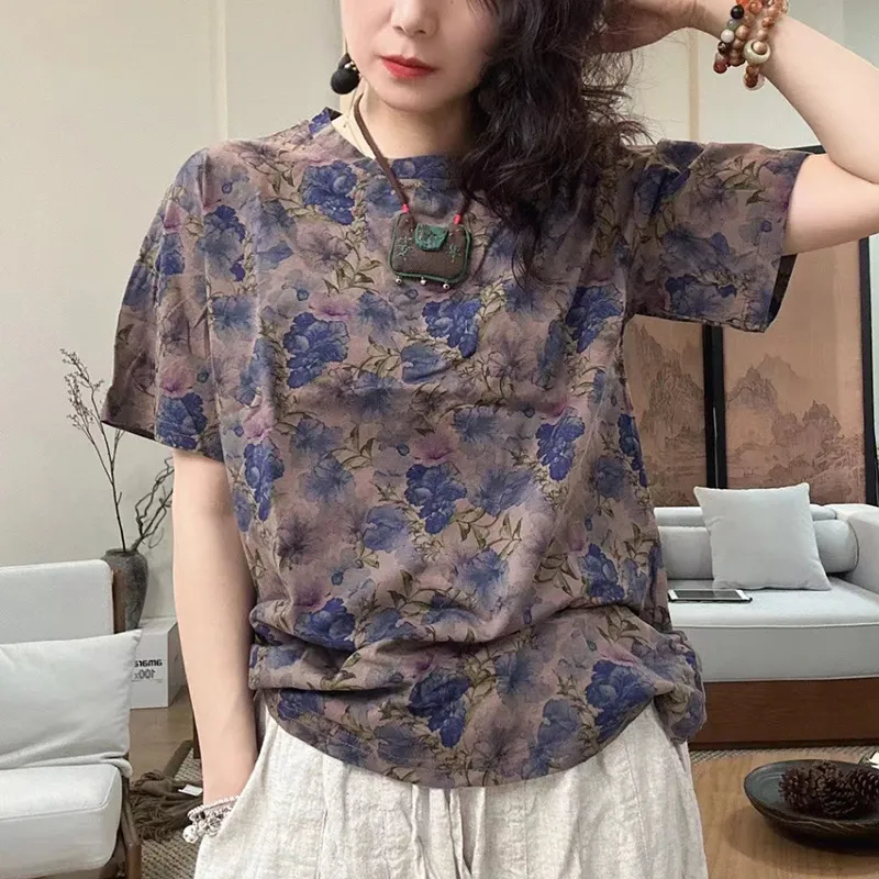衣都精品- 新款立領盤扣拼接五分袖上衣