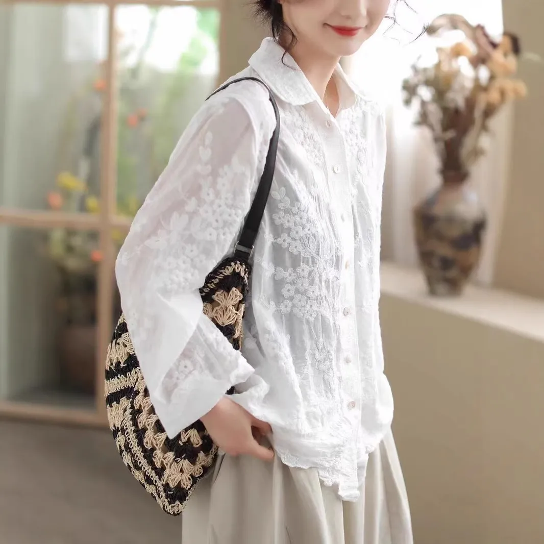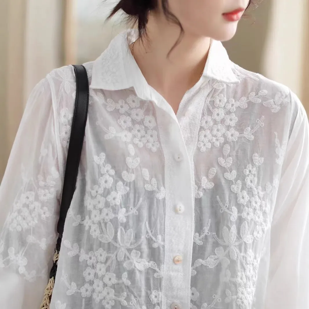 衣都精品- 新款重工刺繡圓領套頭寬鬆七分袖上衣