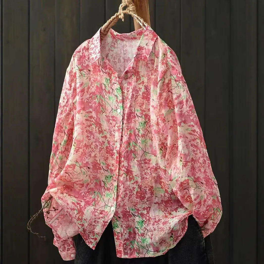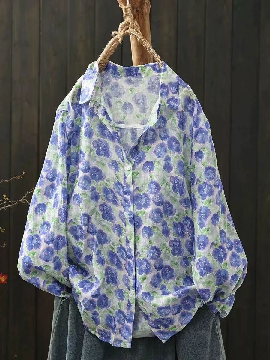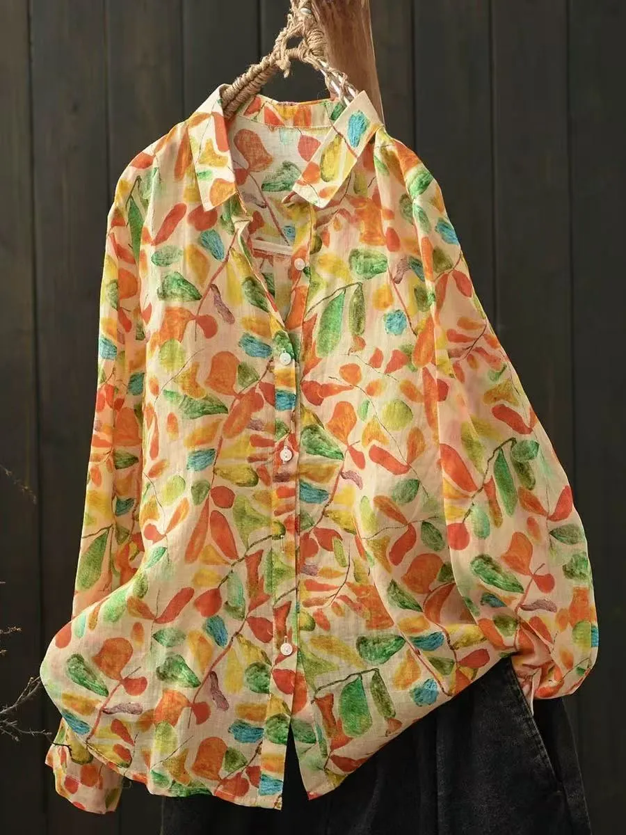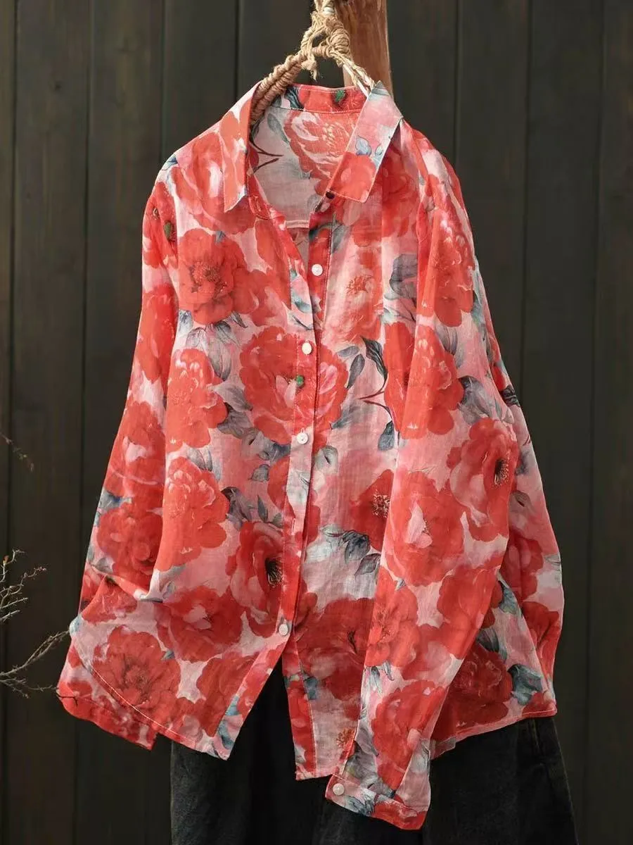 衣都精品- 新款印花翻領長袖單排扣上衣
