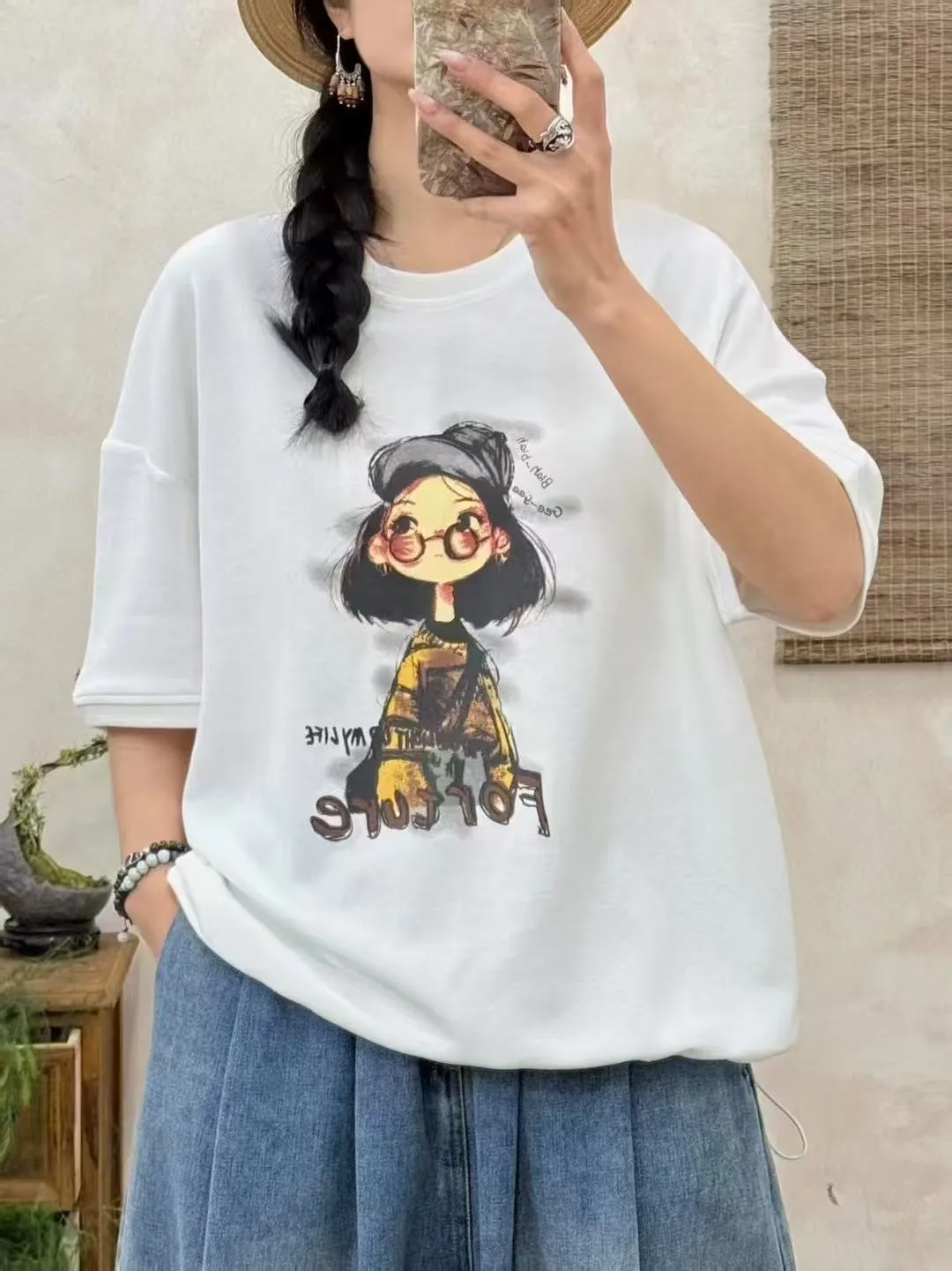 衣都精品- 新款潮流人物寬鬆顯瘦圓領短袖上衣