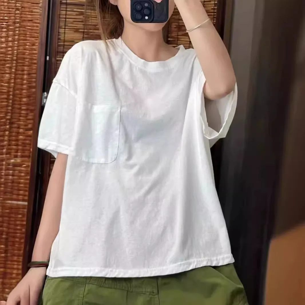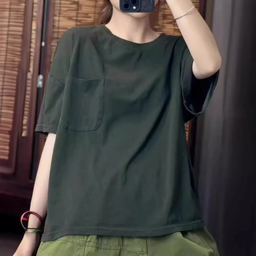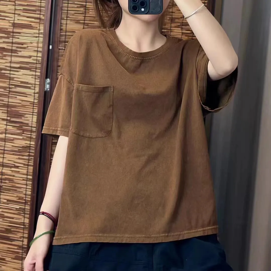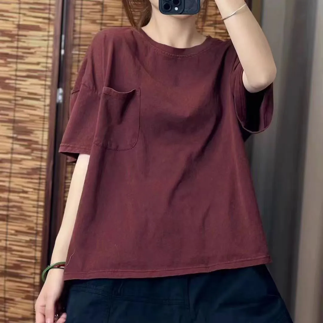 衣都精品- 新款薄款復古炒色圓領休閒百搭上衣