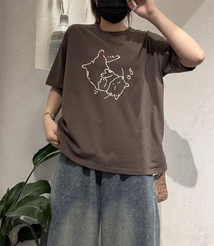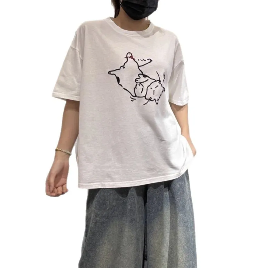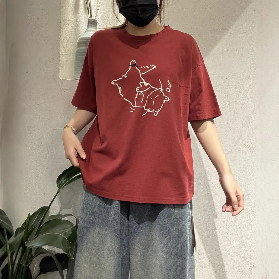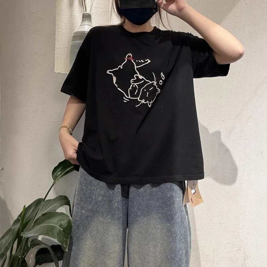衣都精品- 新款貓咪刺繡短袖圓領寬鬆上衣