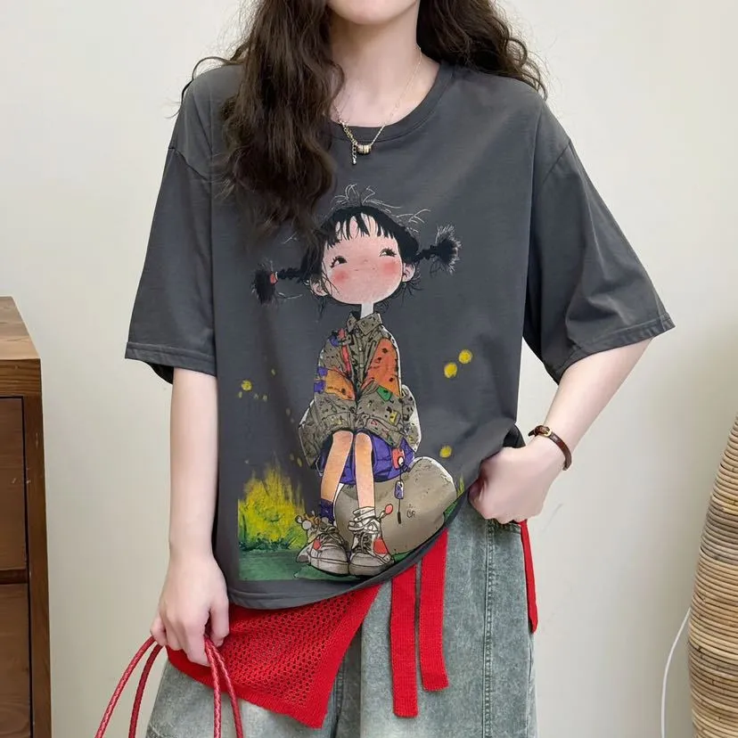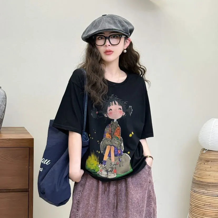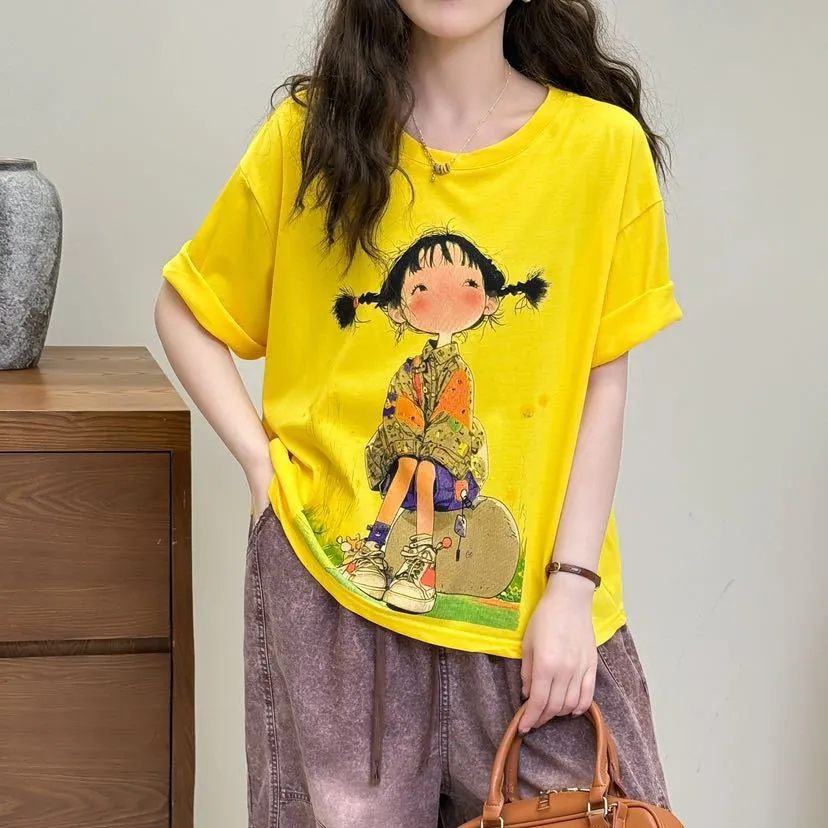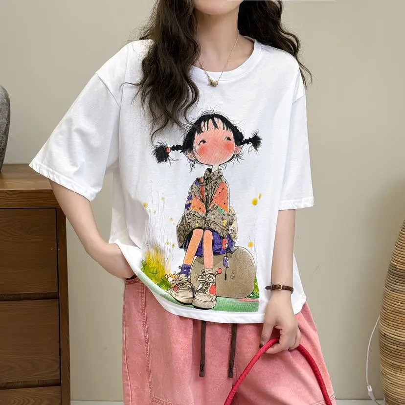 衣都精品- 新款時尚卡通女孩印花寬鬆上衣