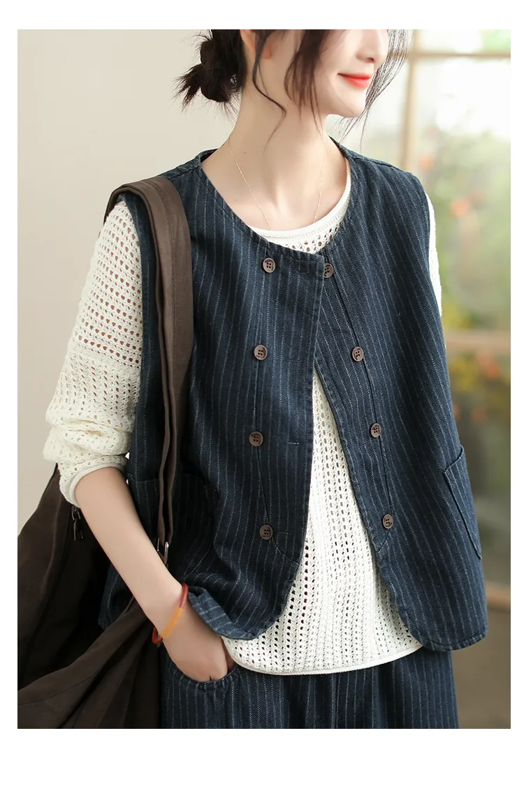 衣都精品- 新款百搭復古休閒牛仔馬甲外套