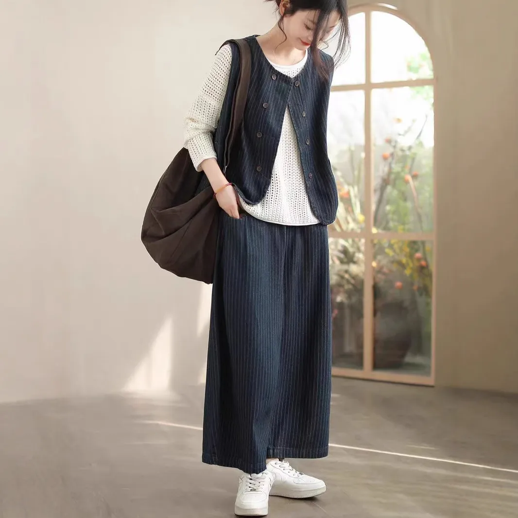 衣都精品- 新款文藝復古簡約慵懶風牛仔背心裙