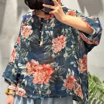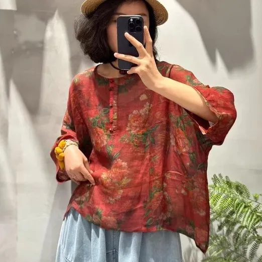 衣都精品- 新款復古寬鬆顯瘦休閒印花上衣