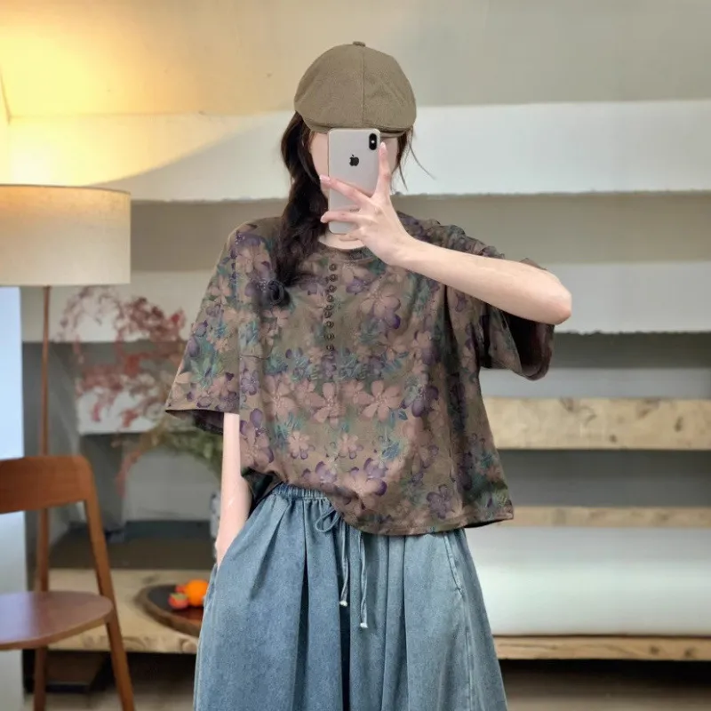 衣都精品- 新款數碼印花氣質短袖寬鬆上衣
