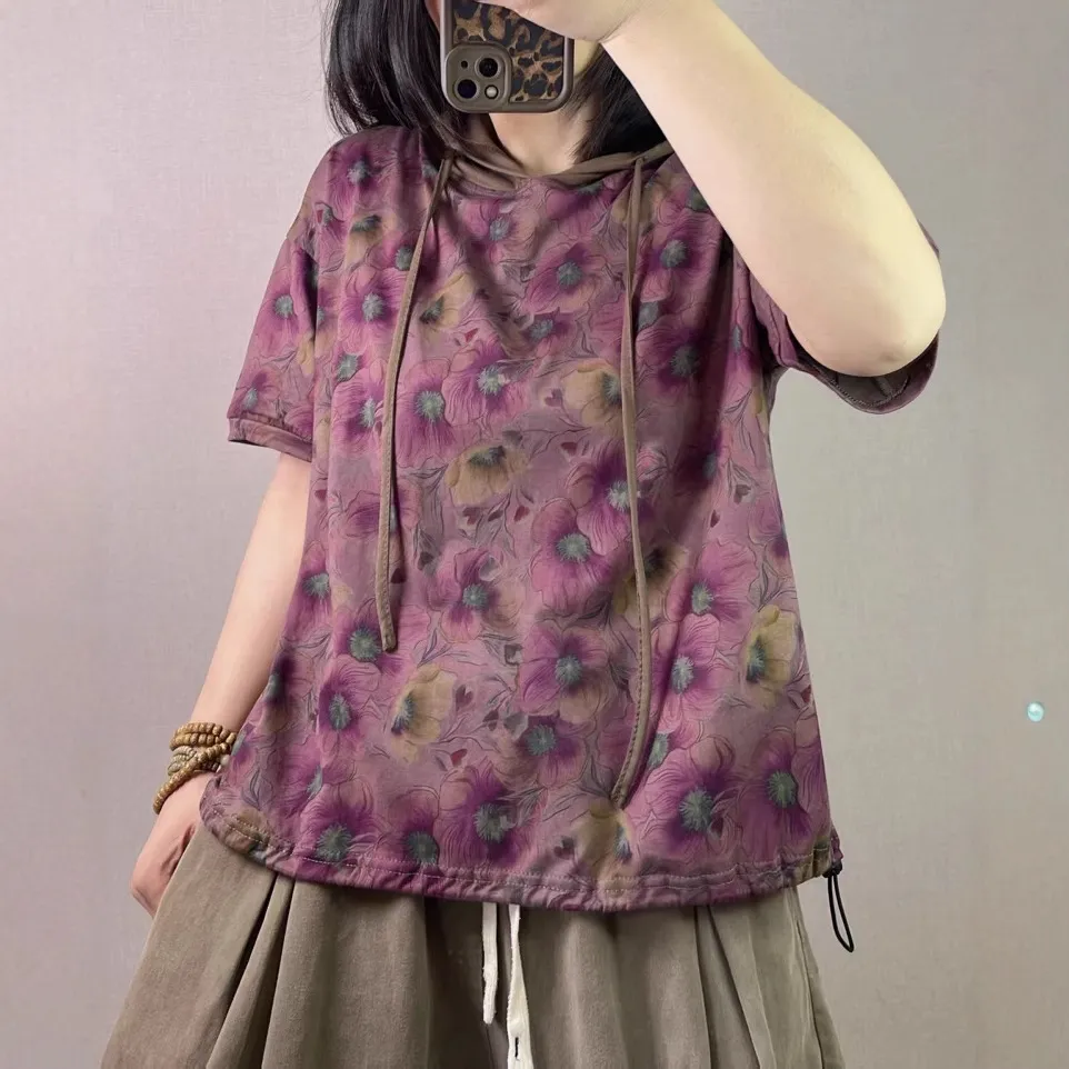 衣都精品- 新款復古印花短袖寬鬆顯瘦上衣