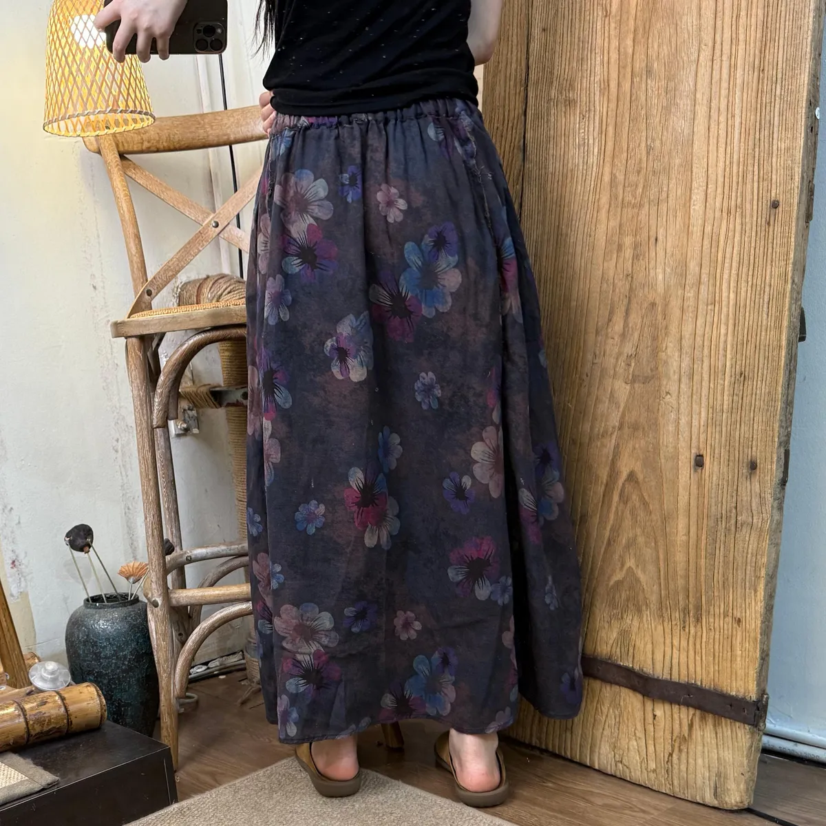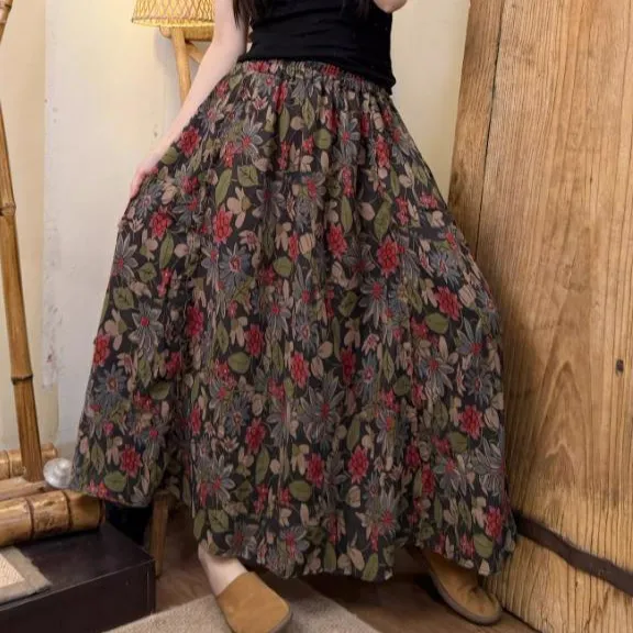 衣都精品- 新款復古百搭寬鬆顯瘦調色系印花雙層半身裙