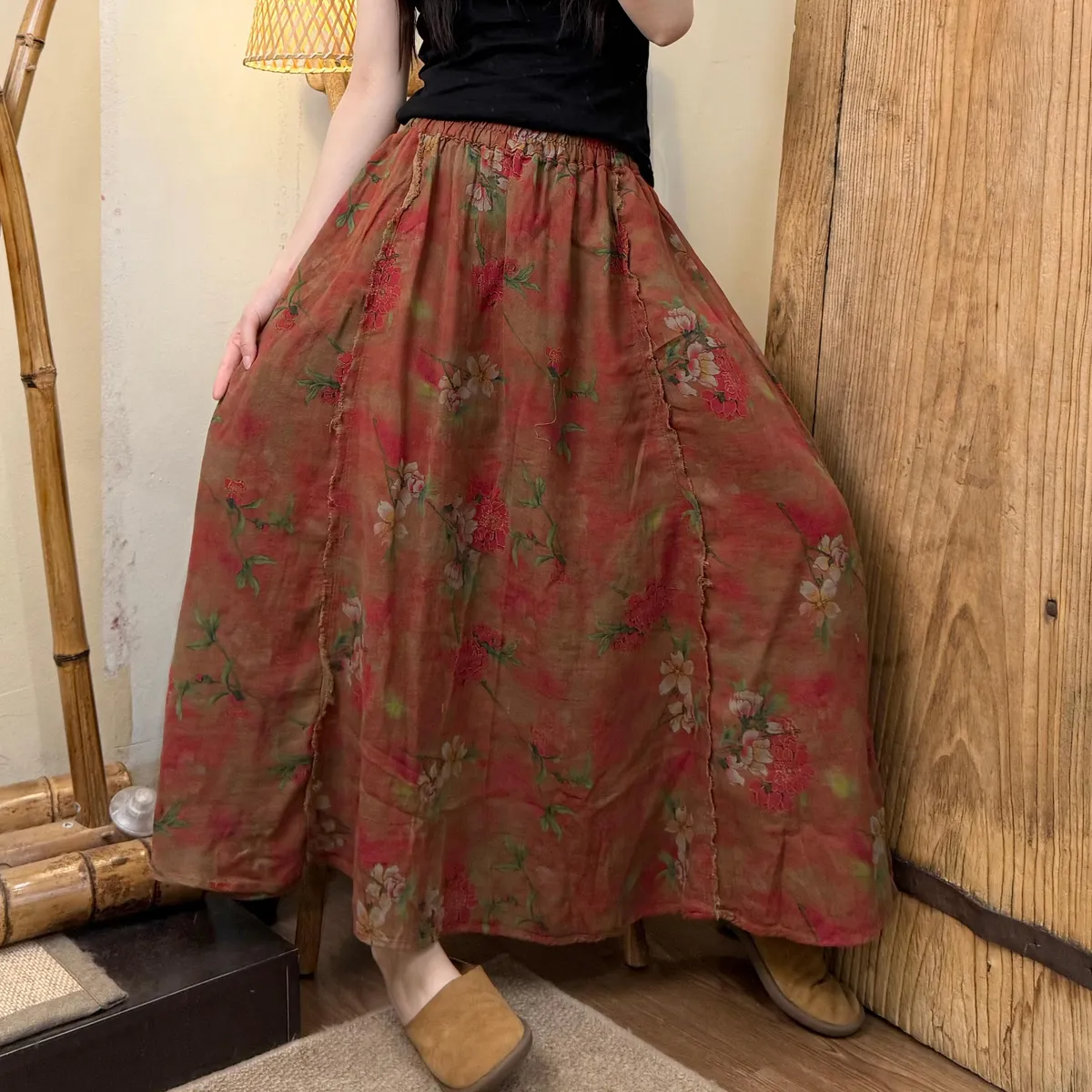 衣都精品- 新款民族風鬆緊腰寬鬆薄款半身裙