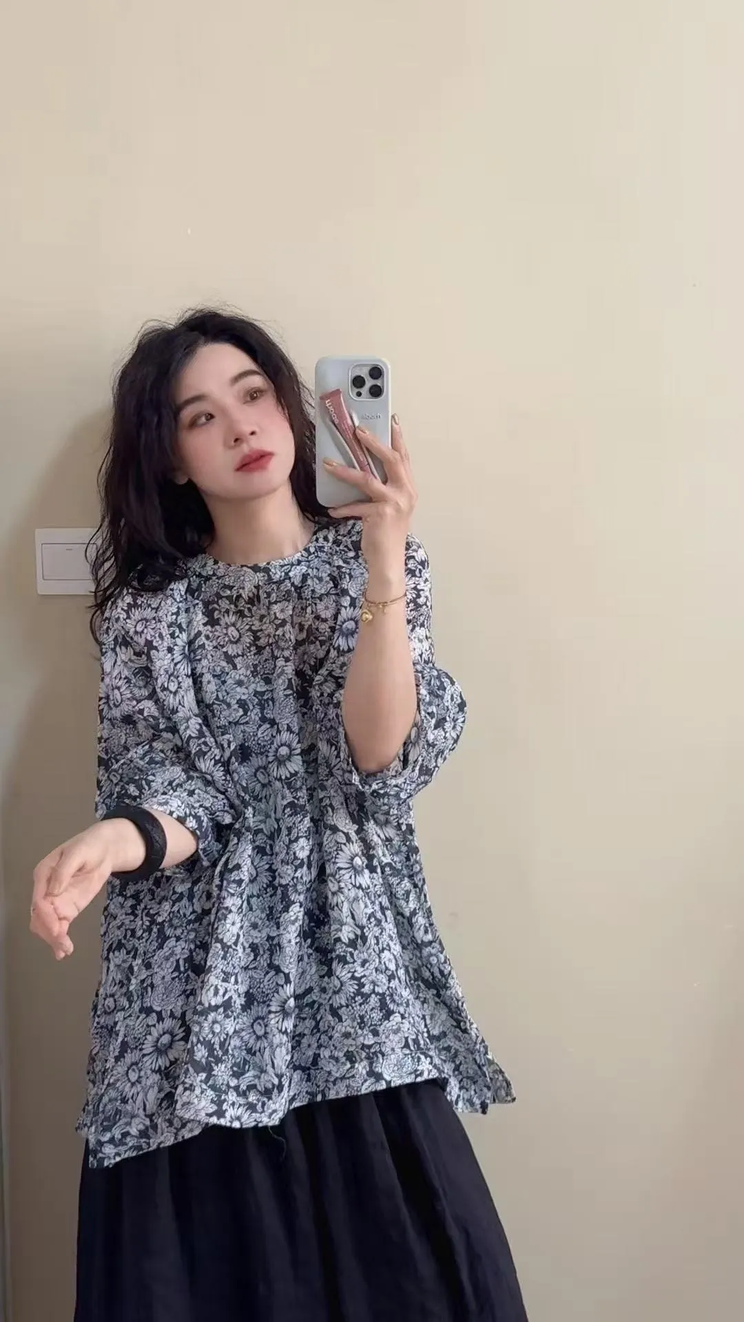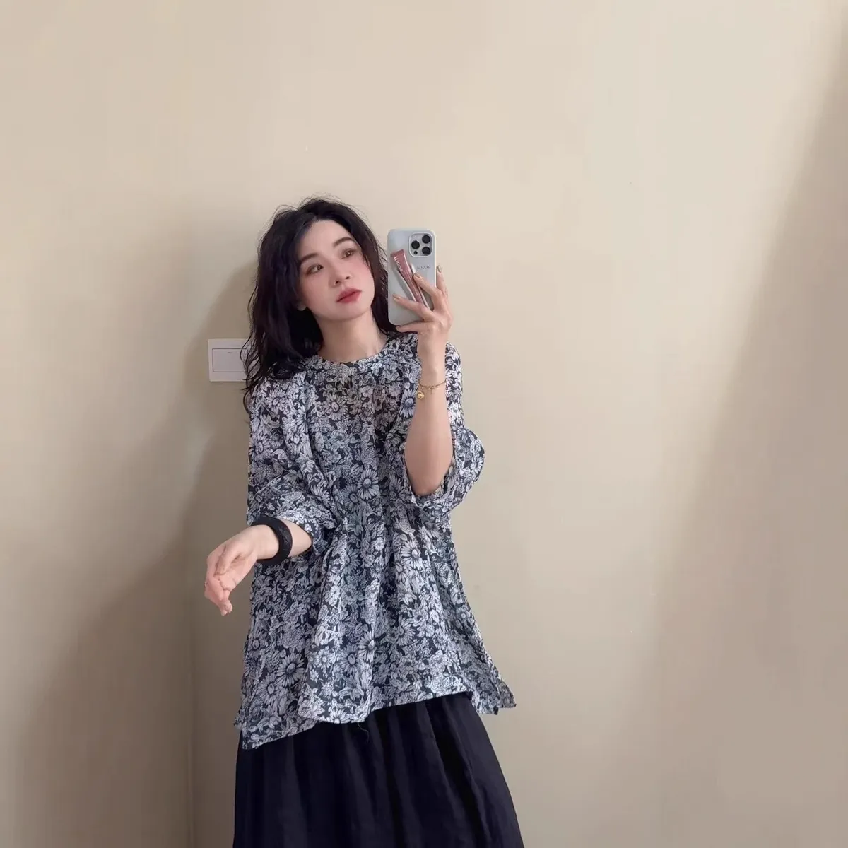 衣都精品- 新款圓領套頭碎花顯瘦小眾上衣