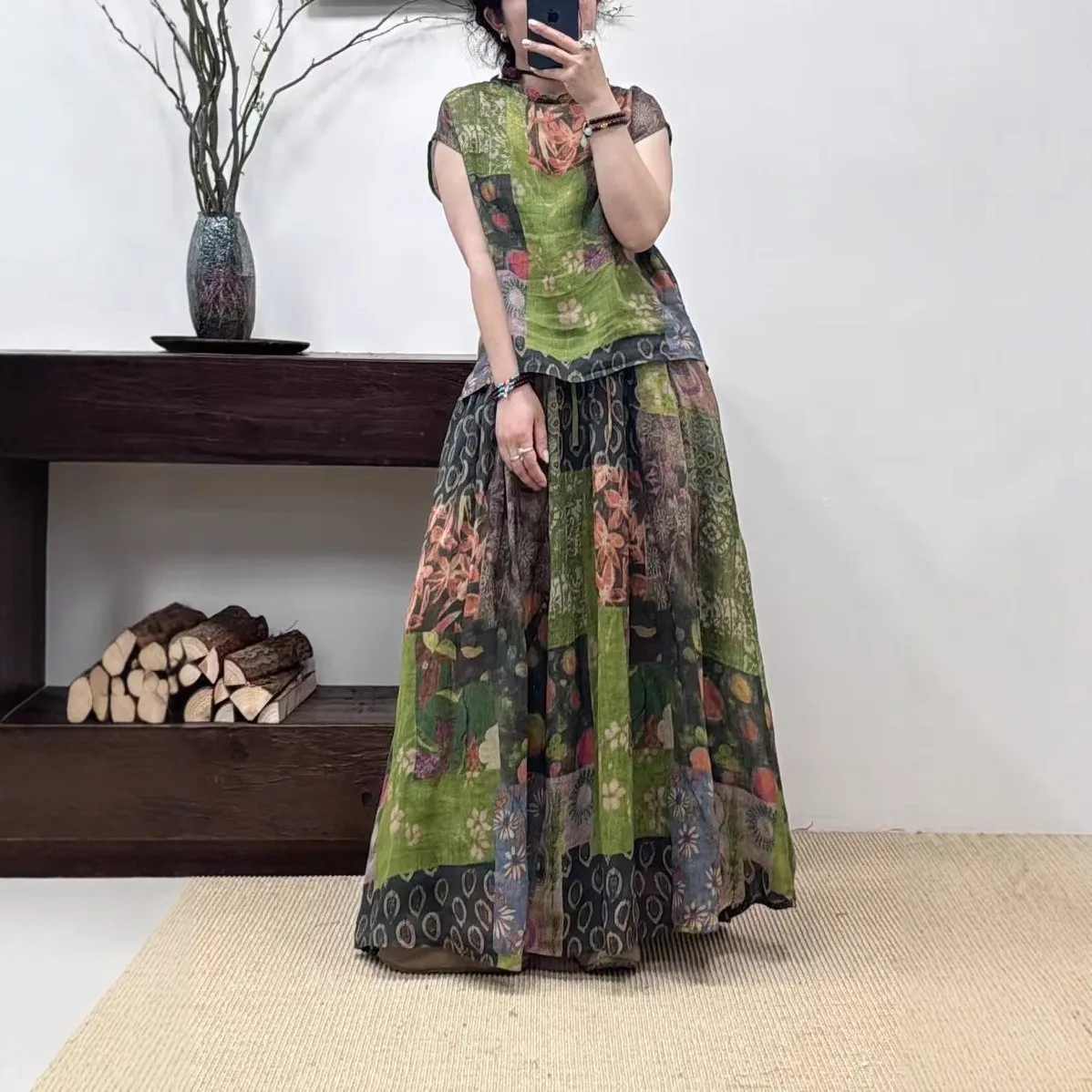 衣都精品- 新款寬鬆數碼印花短袖拼接碎花連衣裙