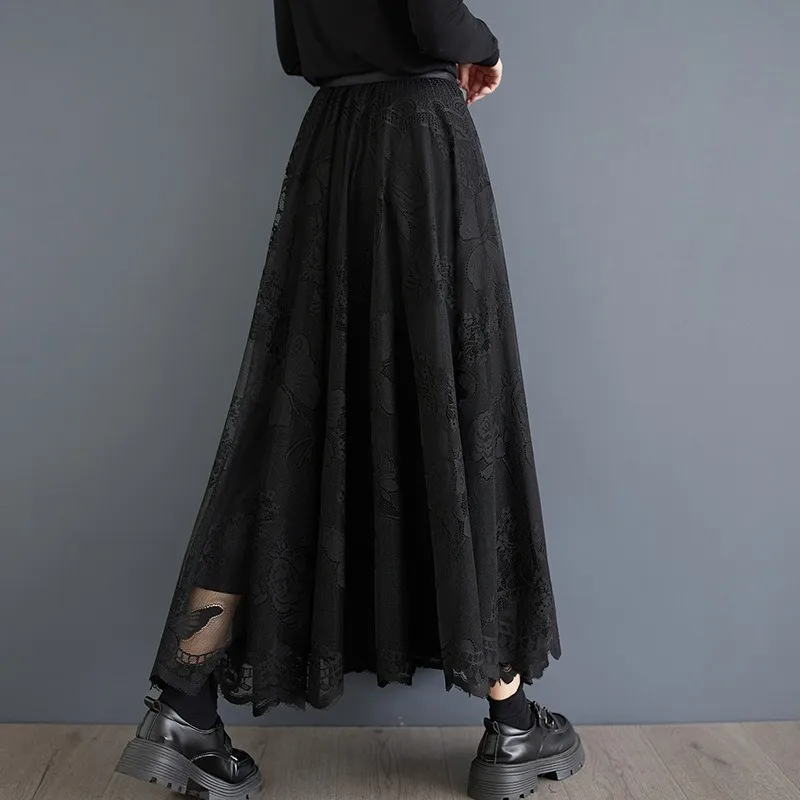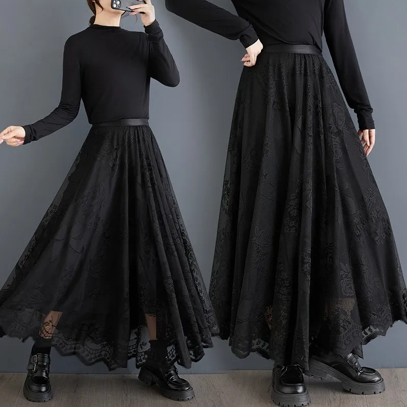 衣都精品- 新款百搭高腰氣質鏤空蕾絲半身裙