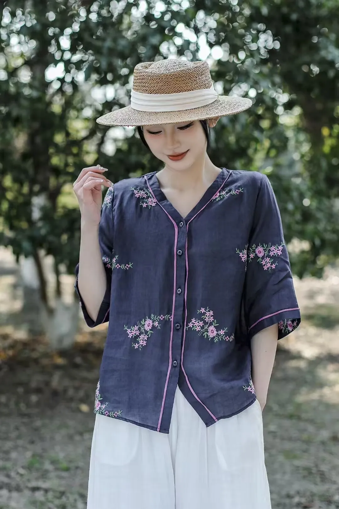 衣都精品- 新款短款苧麻印花開衫休閒上衣
