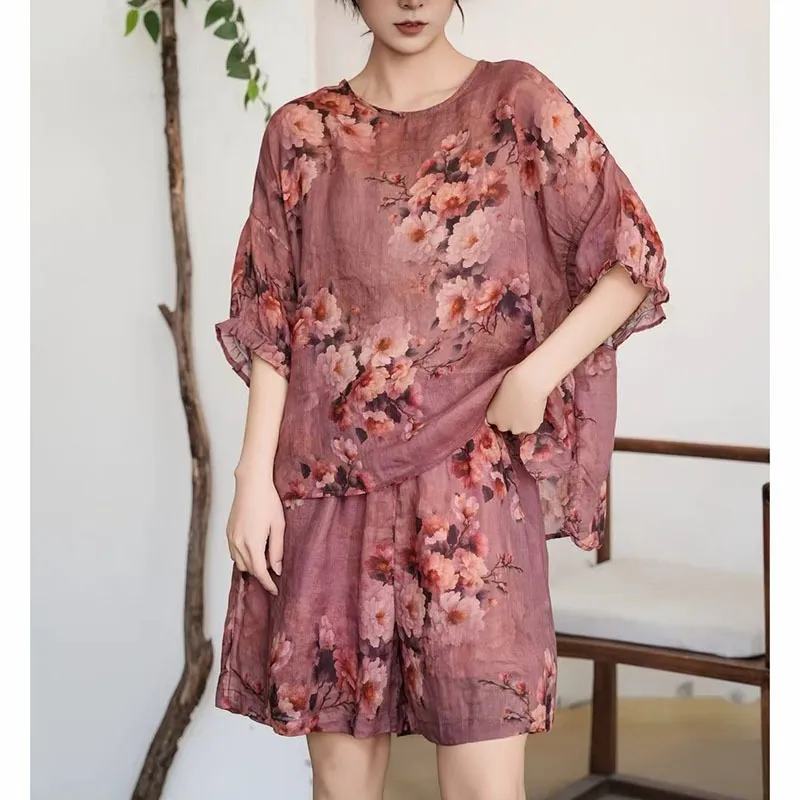 衣都精品- 新款短款苧麻印花開衫休閒上衣