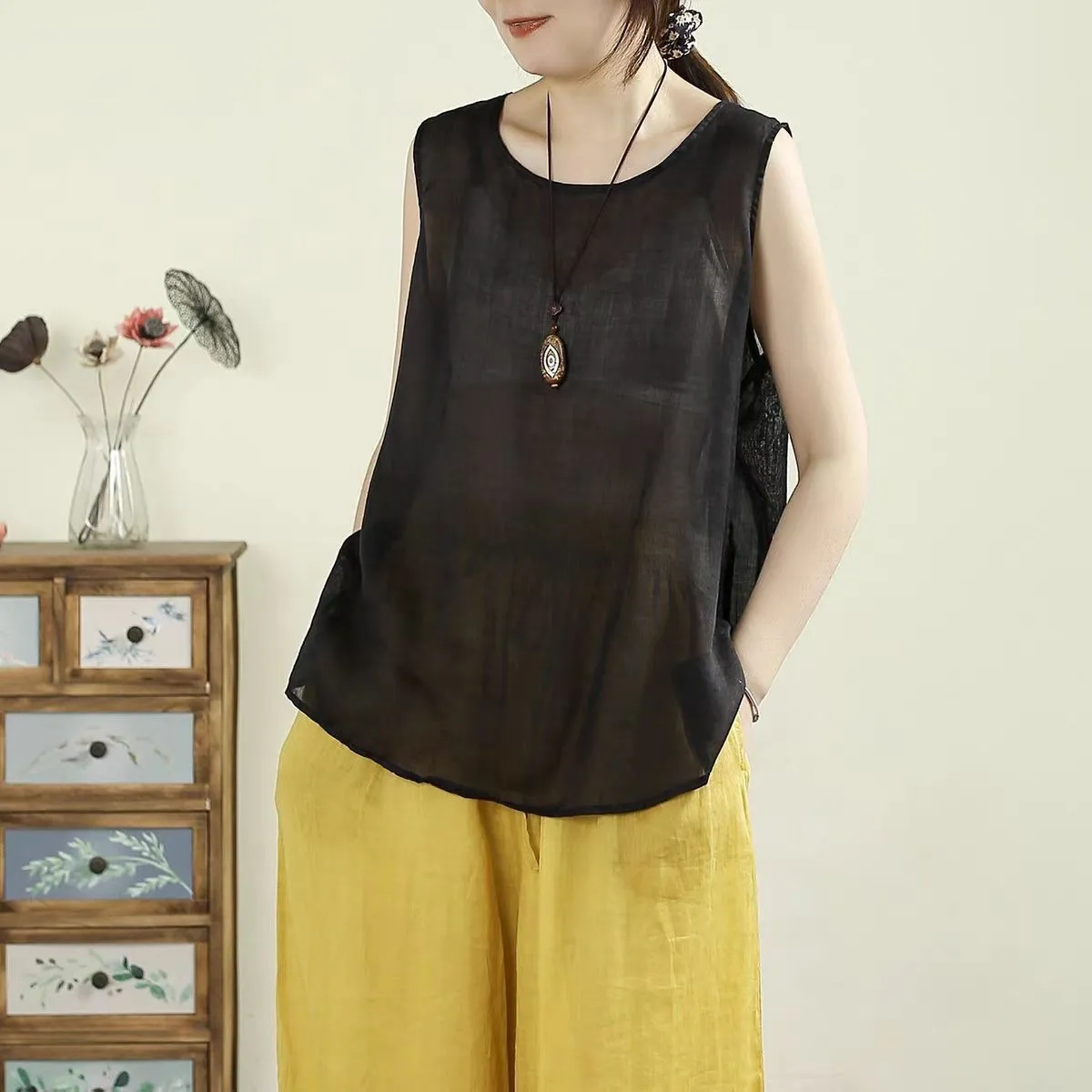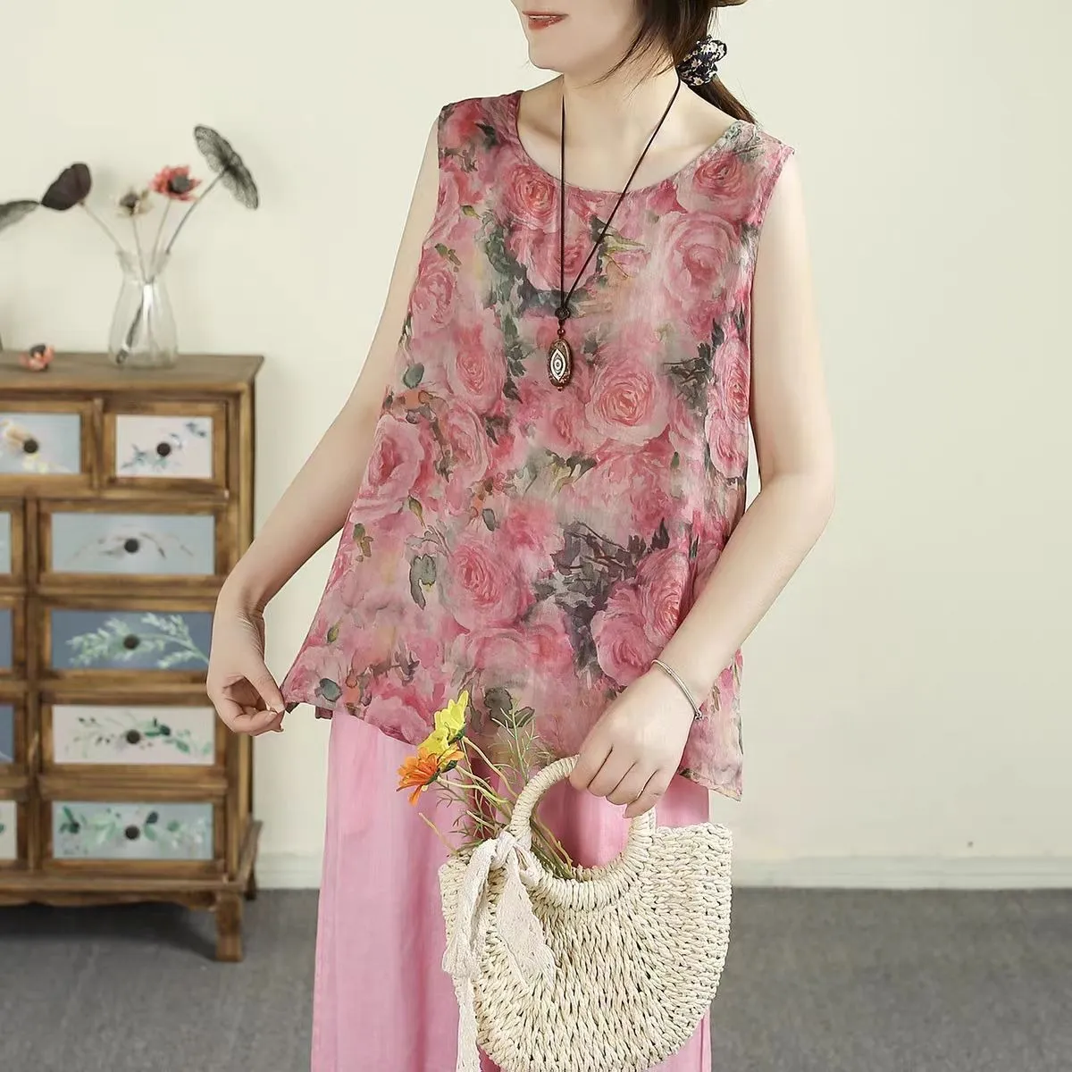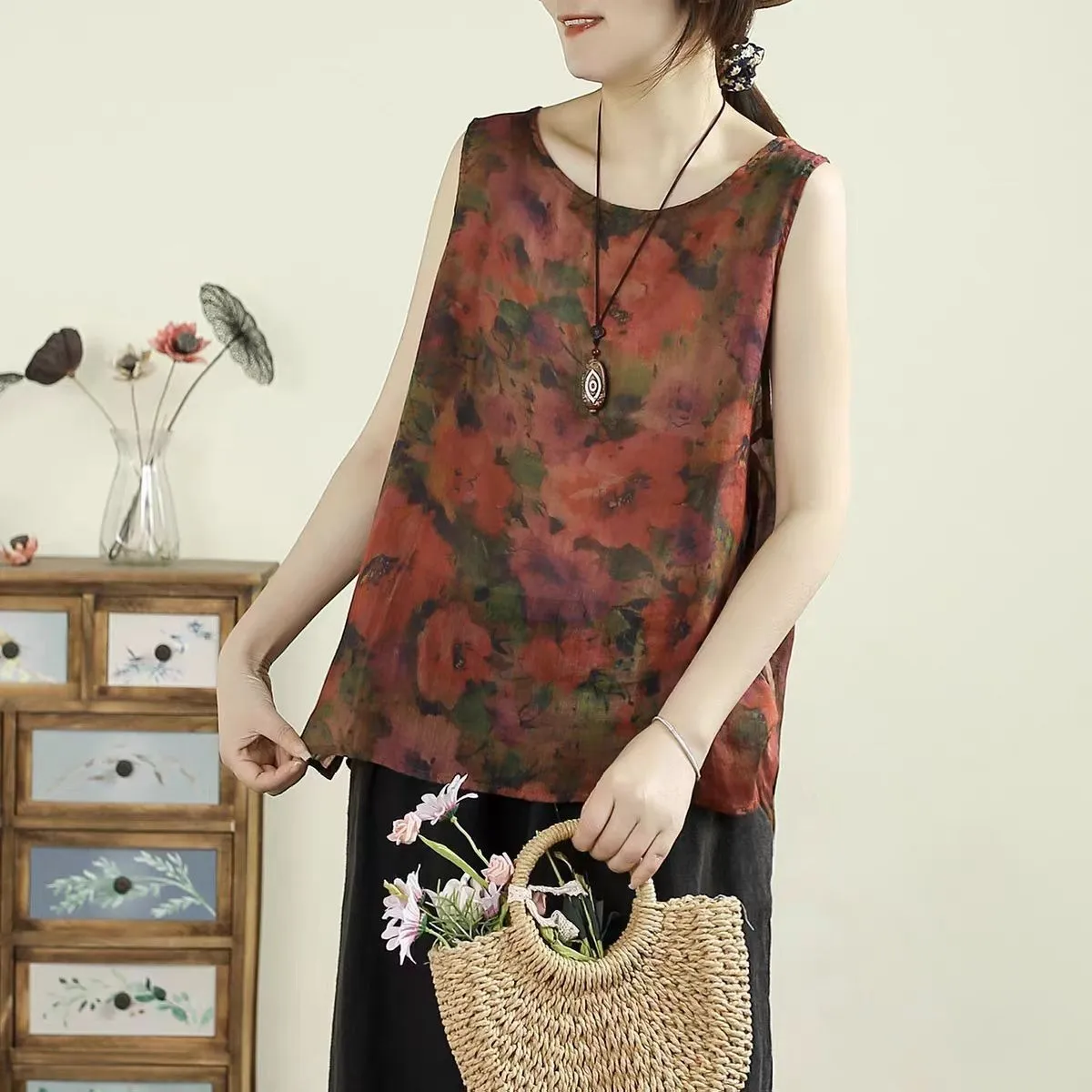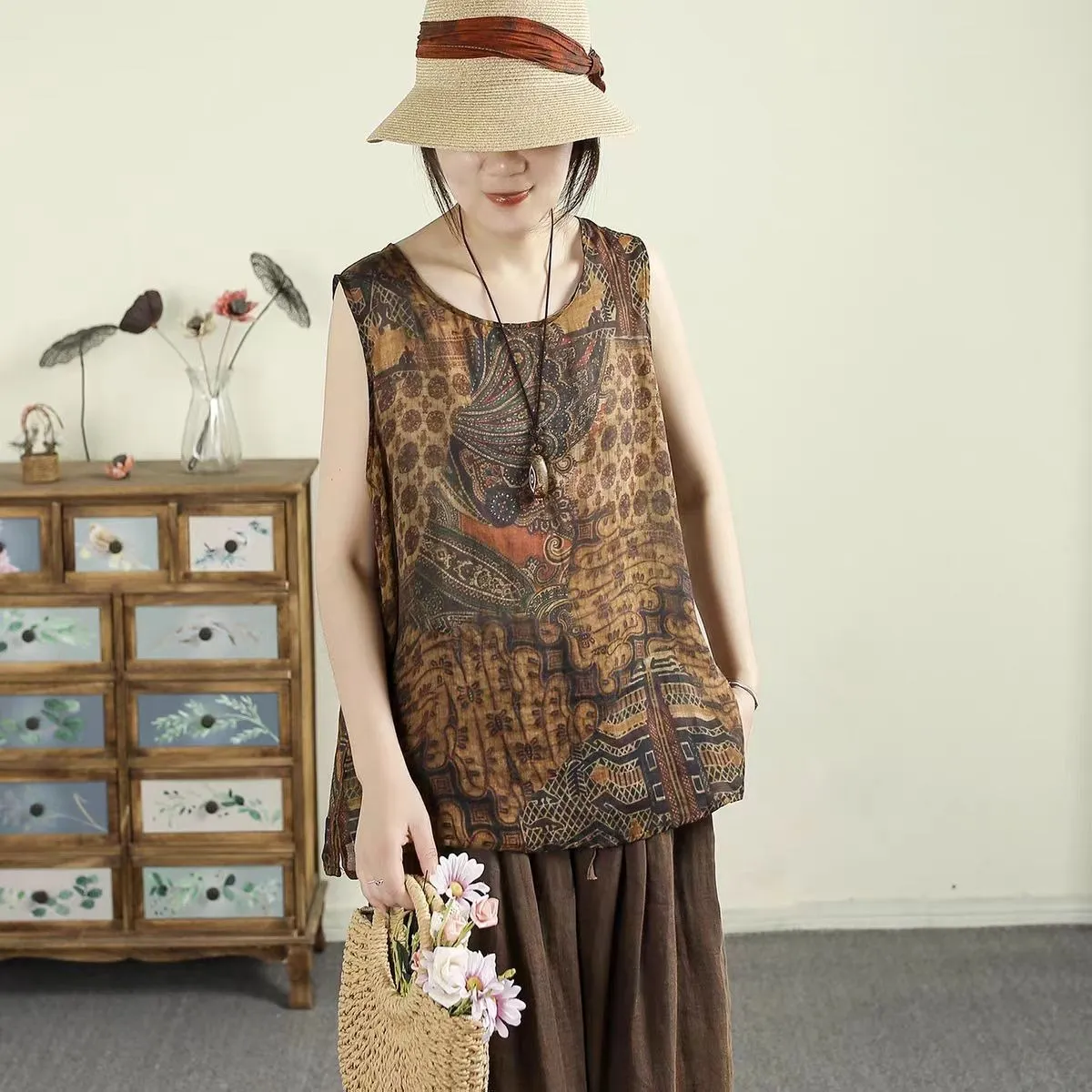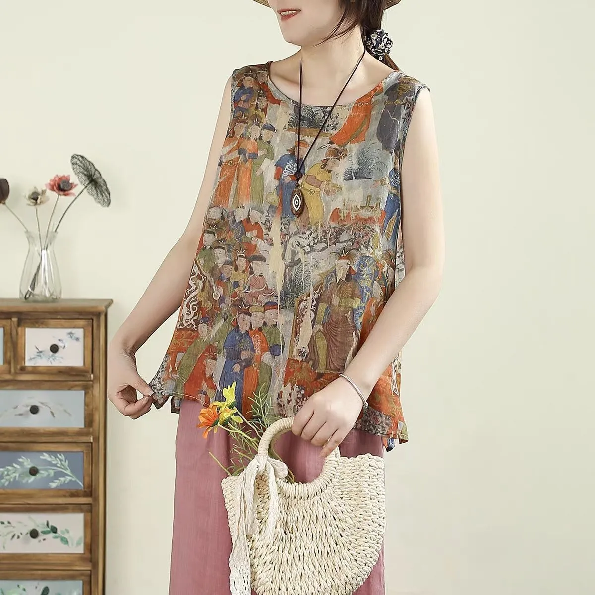 衣都精品- 新款復古做舊印花無袖寬鬆馬甲上衣
