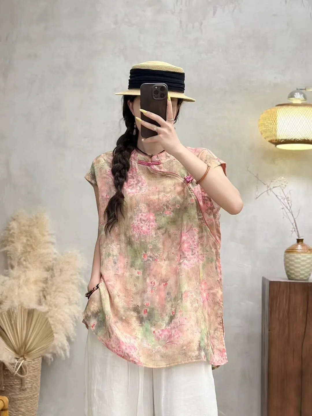 衣都精品- 新款盤扣大碼短袖碎花寬鬆上衣