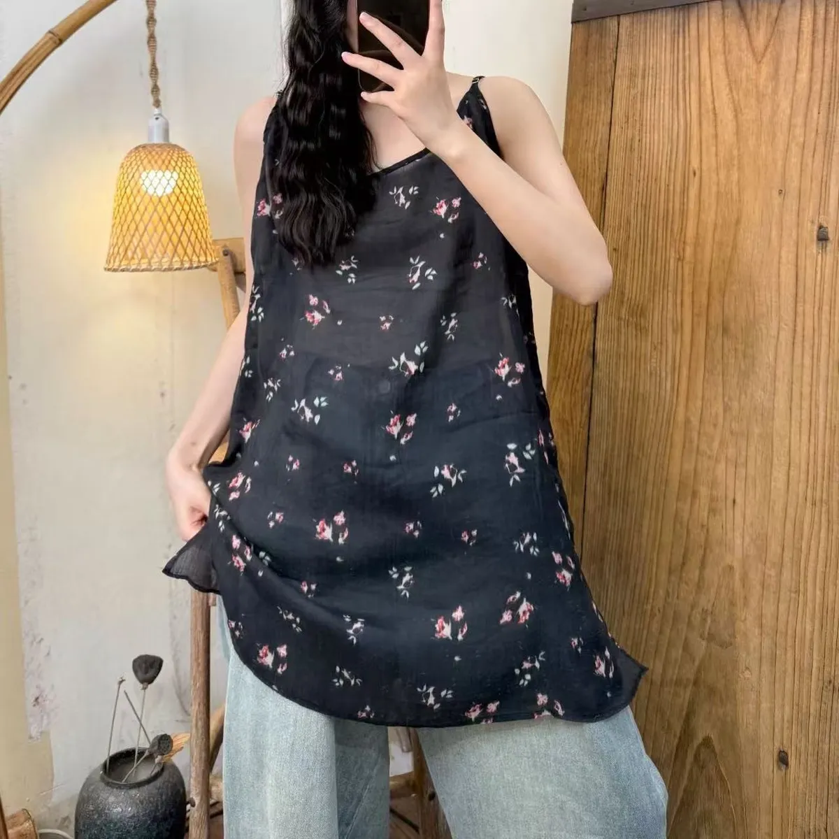 衣都精品- 新款度假風印花氣質顯瘦背心上衣