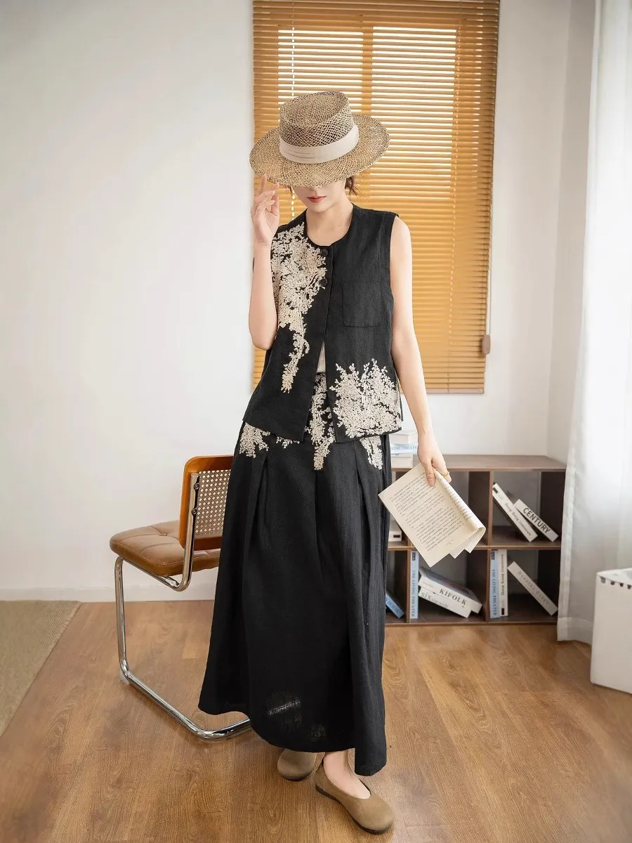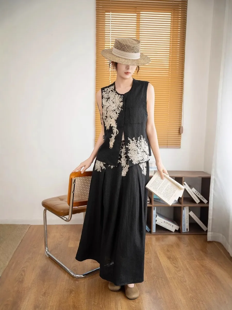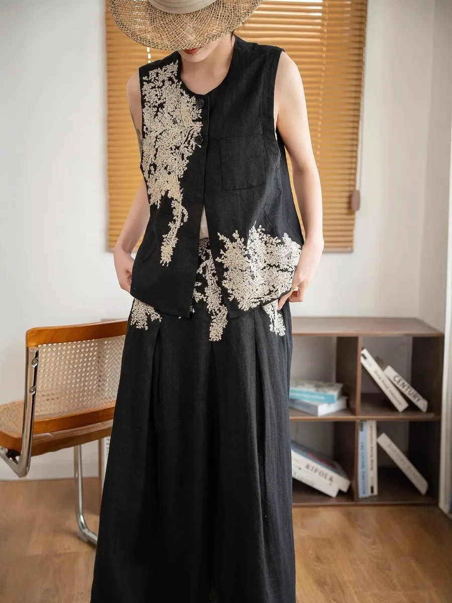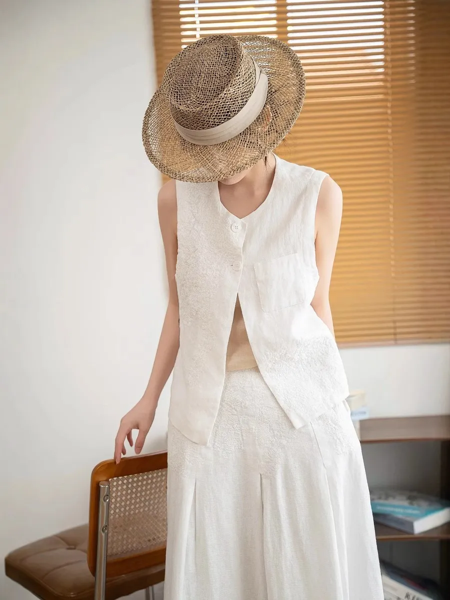 衣都精品- 新款時尚刺繡圓領單排扣馬甲上衣