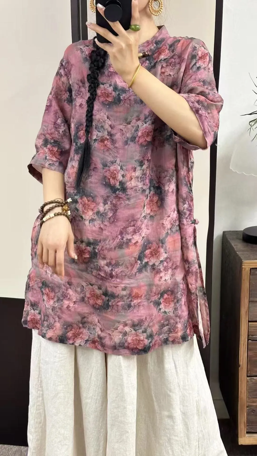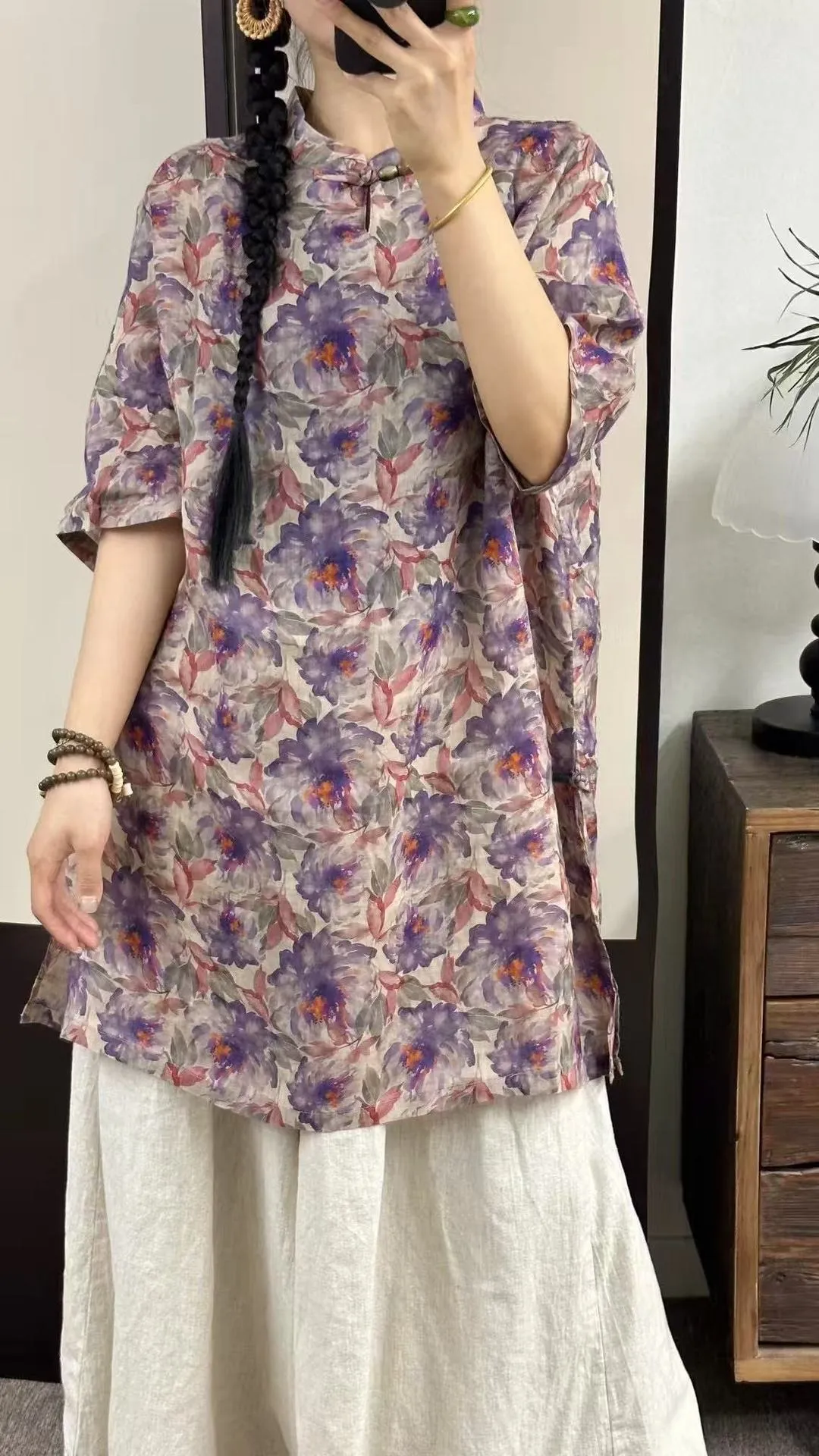 衣都精品- 新款復古中國風印花斜襟盤扣上衣