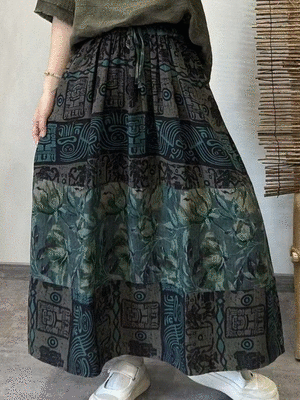 衣都精品- 新款文藝復古印花雙層紗半身裙
