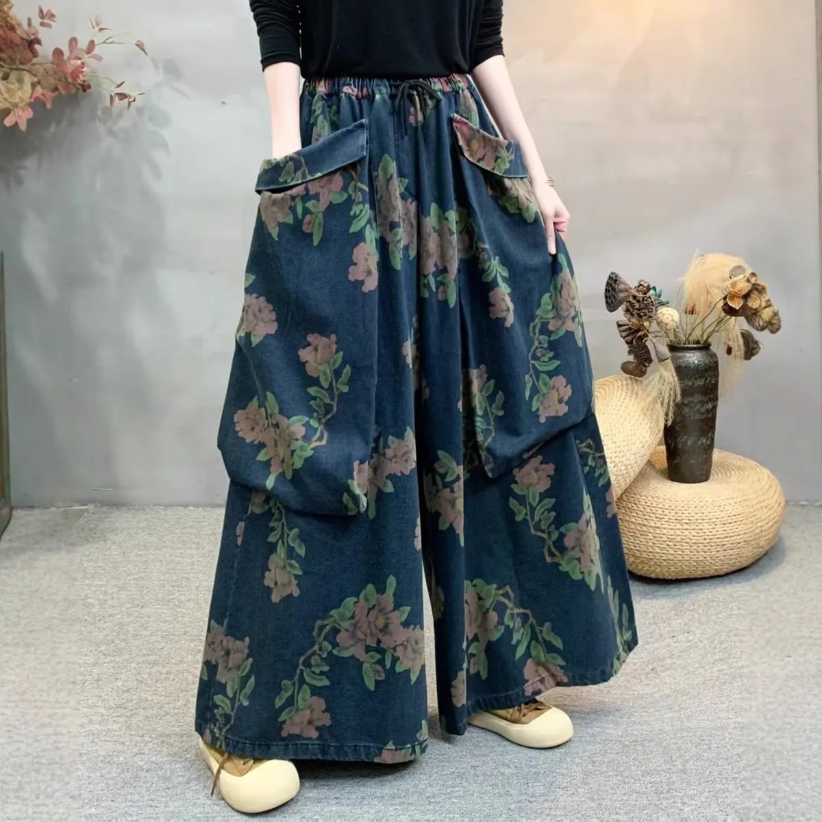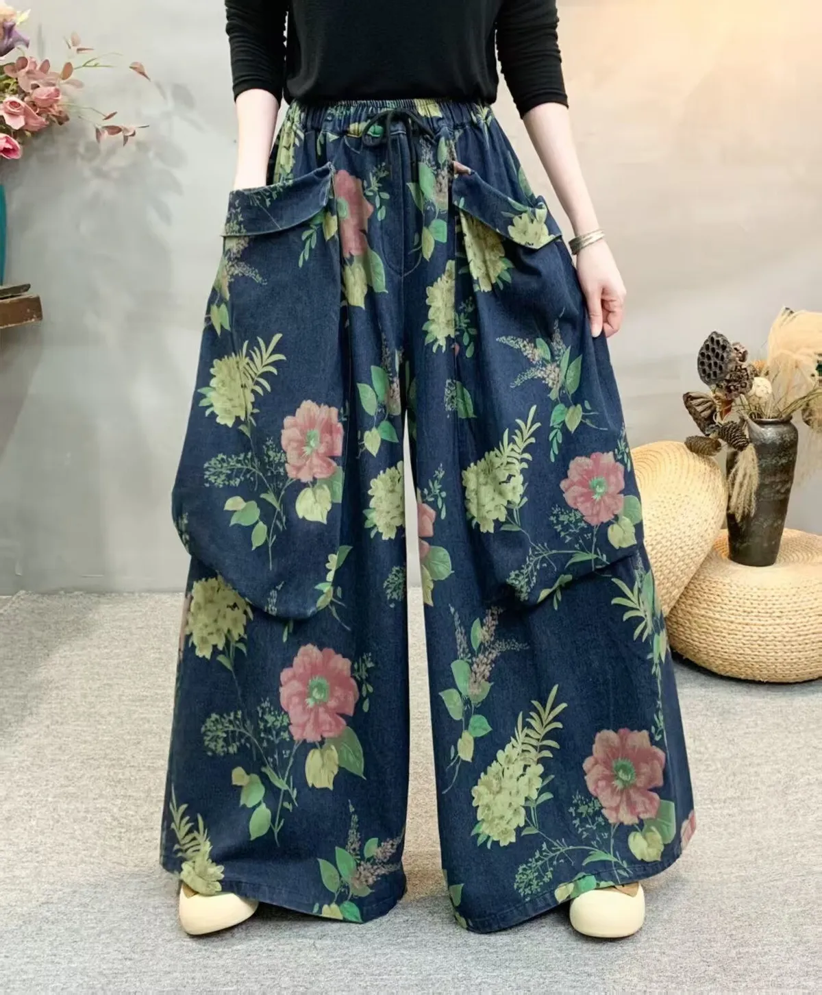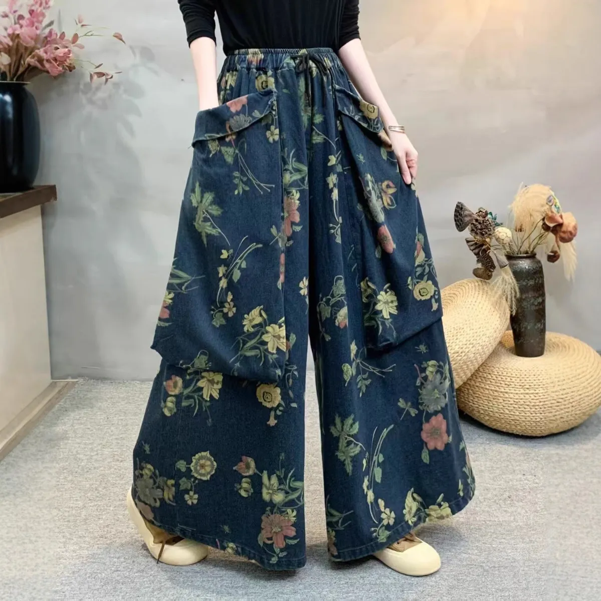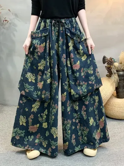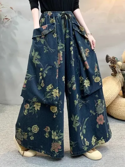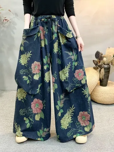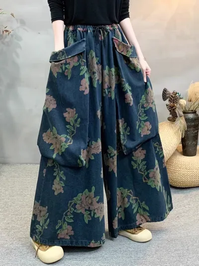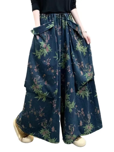 衣都精品- 新款復古純色薄款鬆緊腰百搭雙層闊腿褲