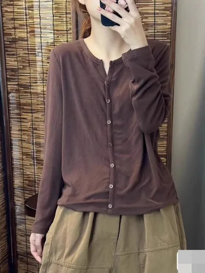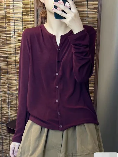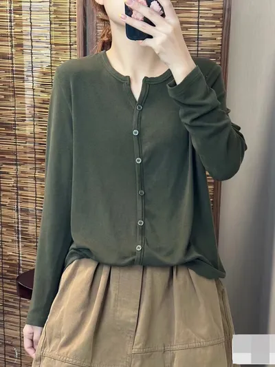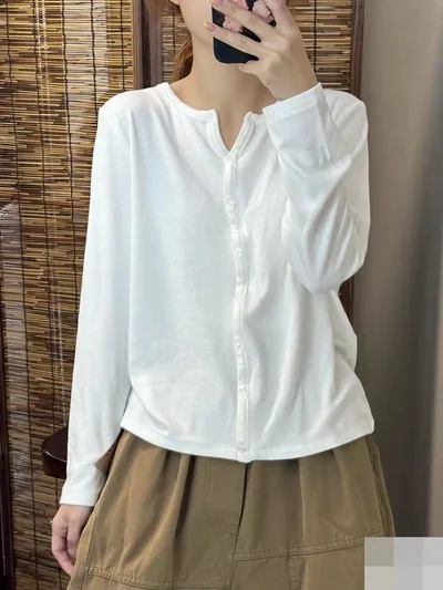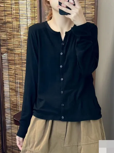 衣都精品- 新款顯瘦單排扣氣質款長袖打底衫上衣