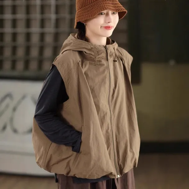 衣都精品- 新款時尚寬鬆無袖開衫連帽馬甲外套