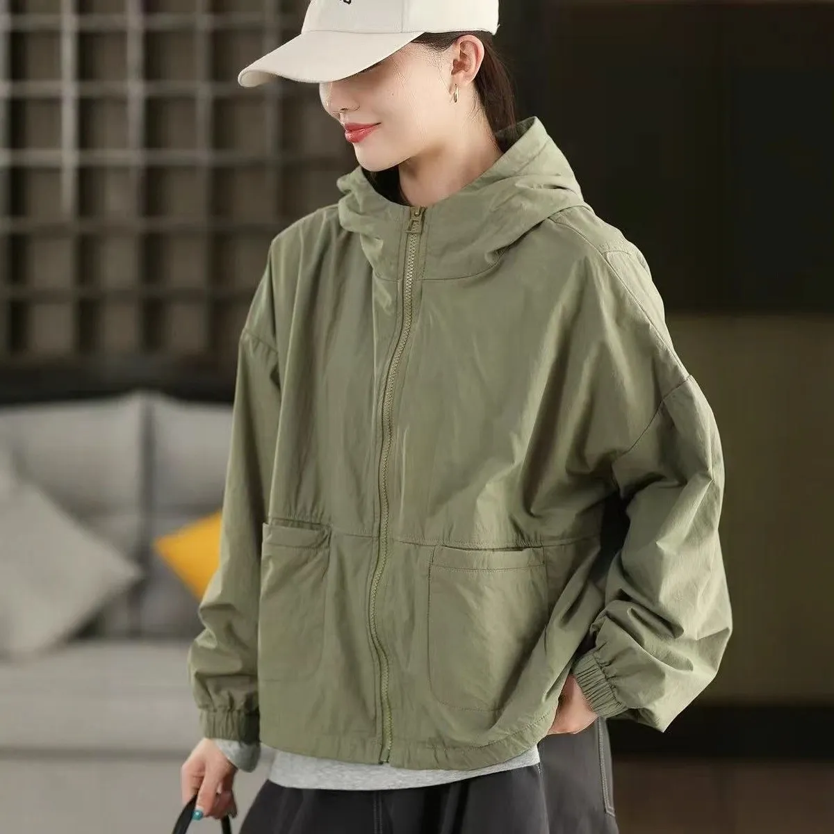 衣都精品- 新款時尚抽繩擺長袖雙層連帽短外套