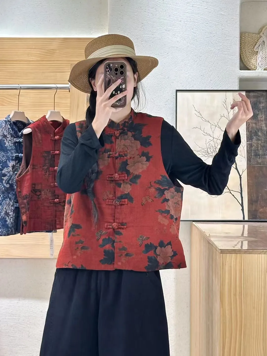 衣都精品- 新款文藝復古數位印花無袖馬甲外套