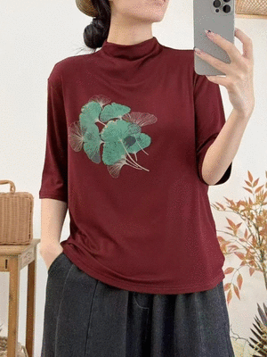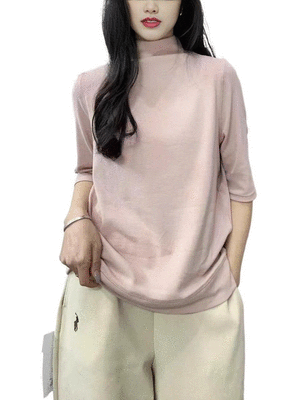 衣都精品- 新款休閒中袖半高領T恤上衣