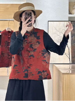 衣都精品- 新款民族風立領提花盤扣馬甲外套