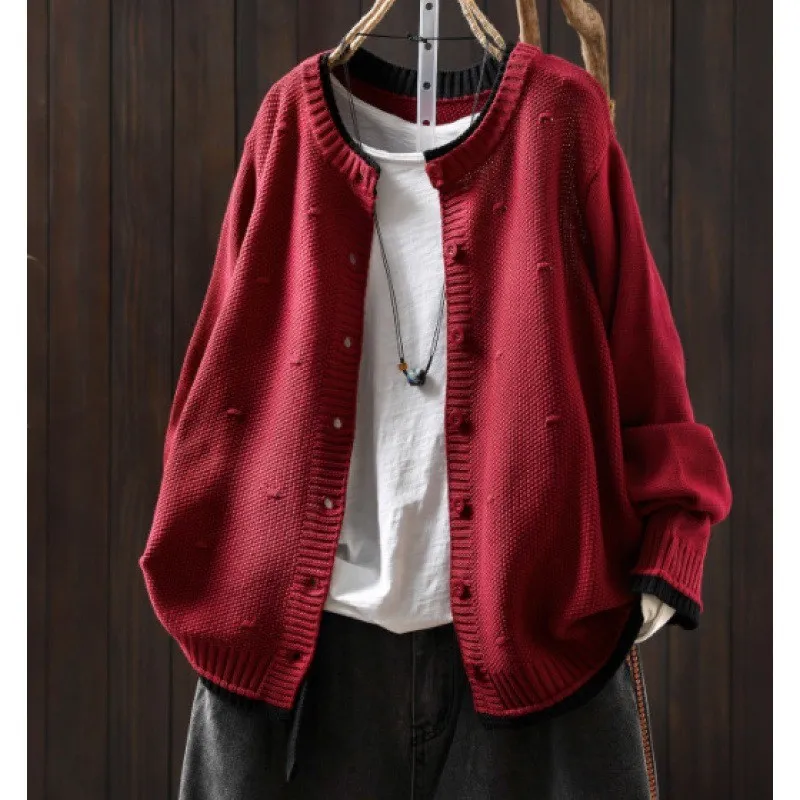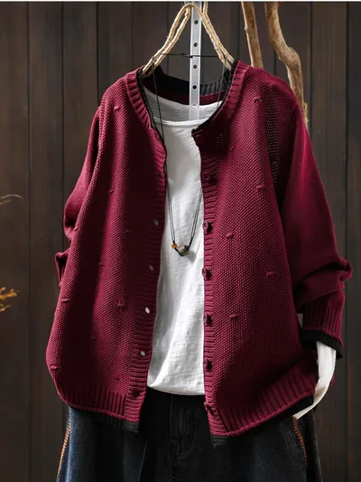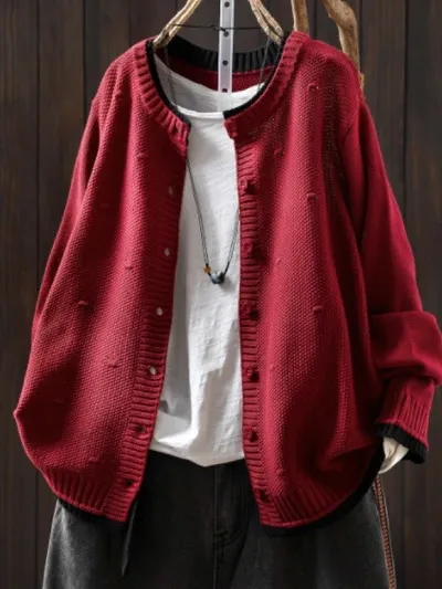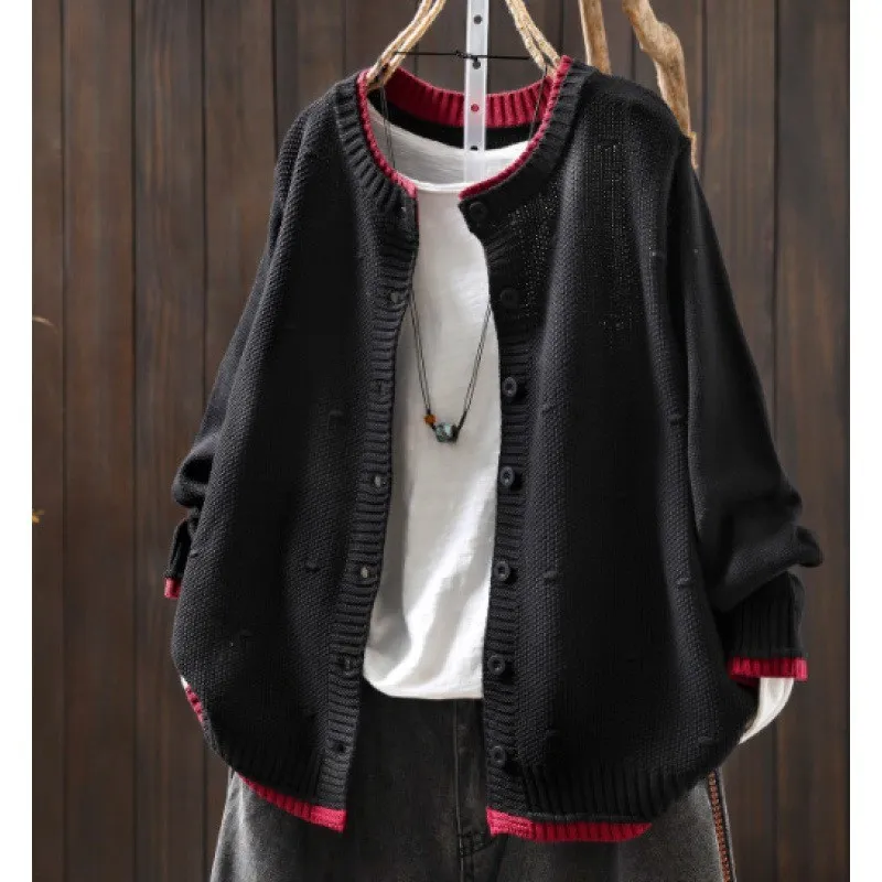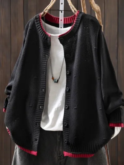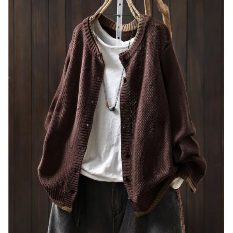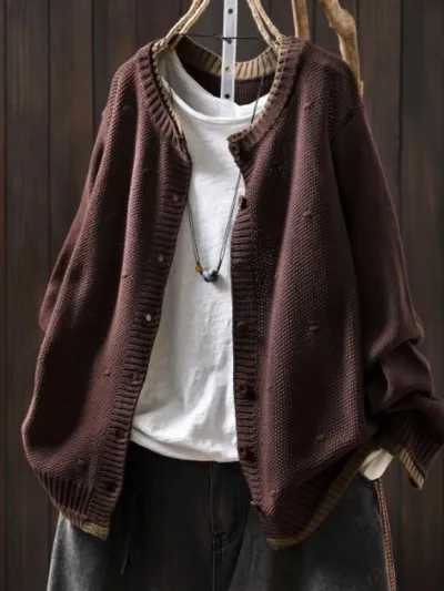 衣都精品- 新款復古休閒拼接毛衣開襟外套