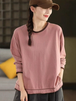 衣都精品- 新款文藝寬鬆顯瘦套頭拼色上衣