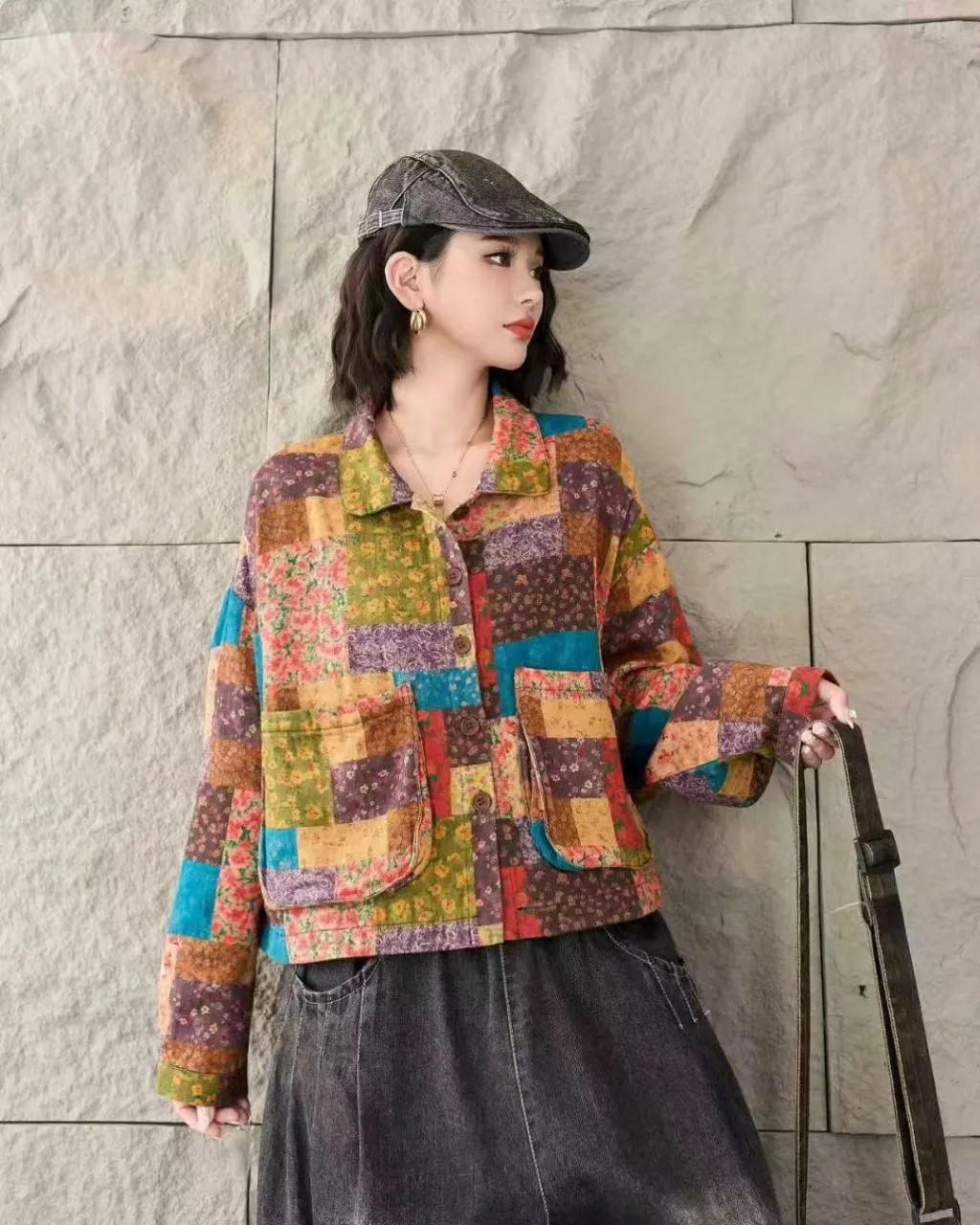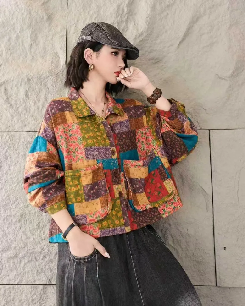 衣都精品- 新款文藝復古雙層水洗斜紋棉外套