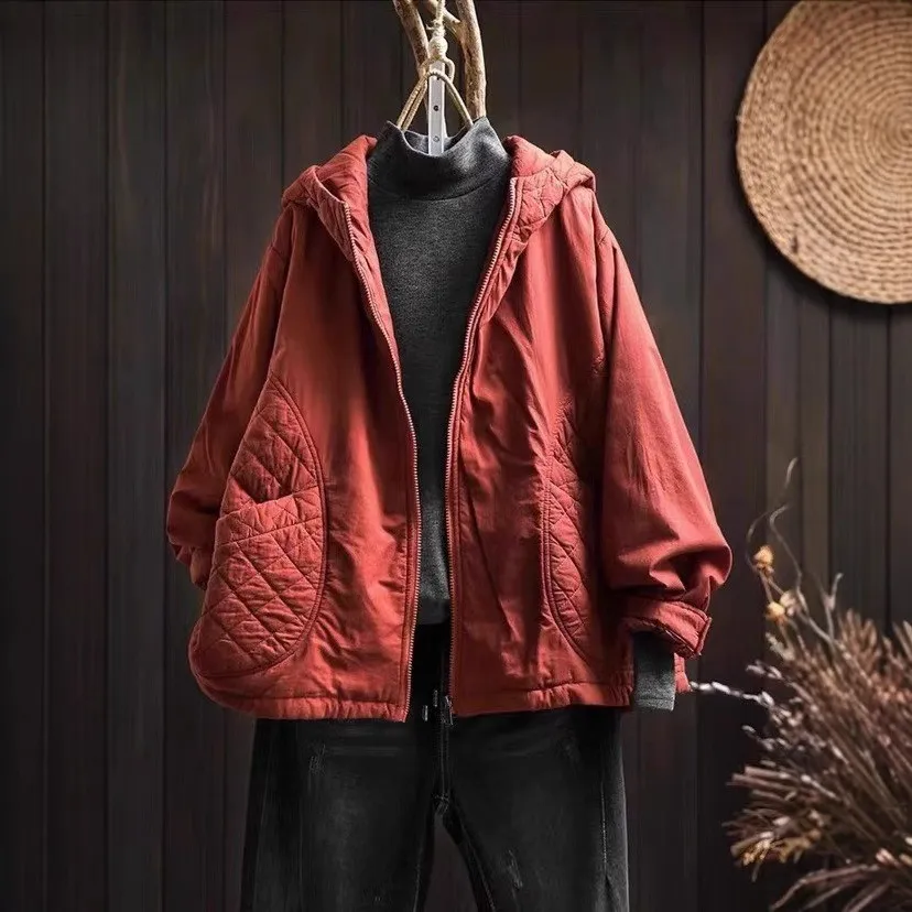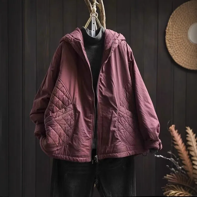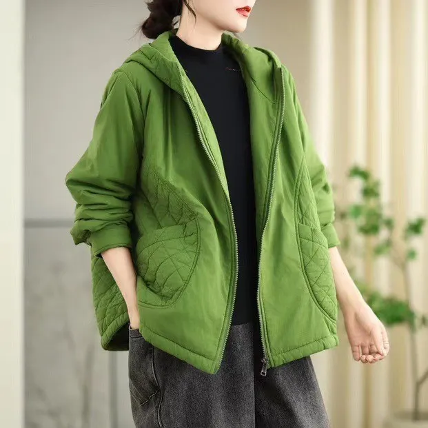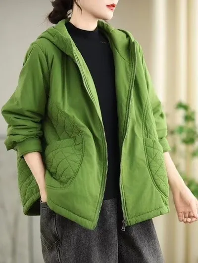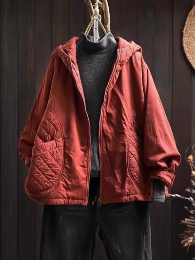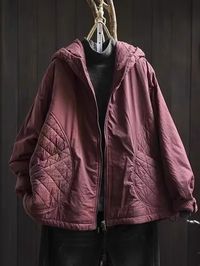 衣都精品- 新款復古休閒菱格連帽夾棉外套