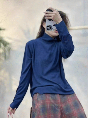 衣都精品- 新款韓版寬鬆顯瘦簡約高領純色上衣