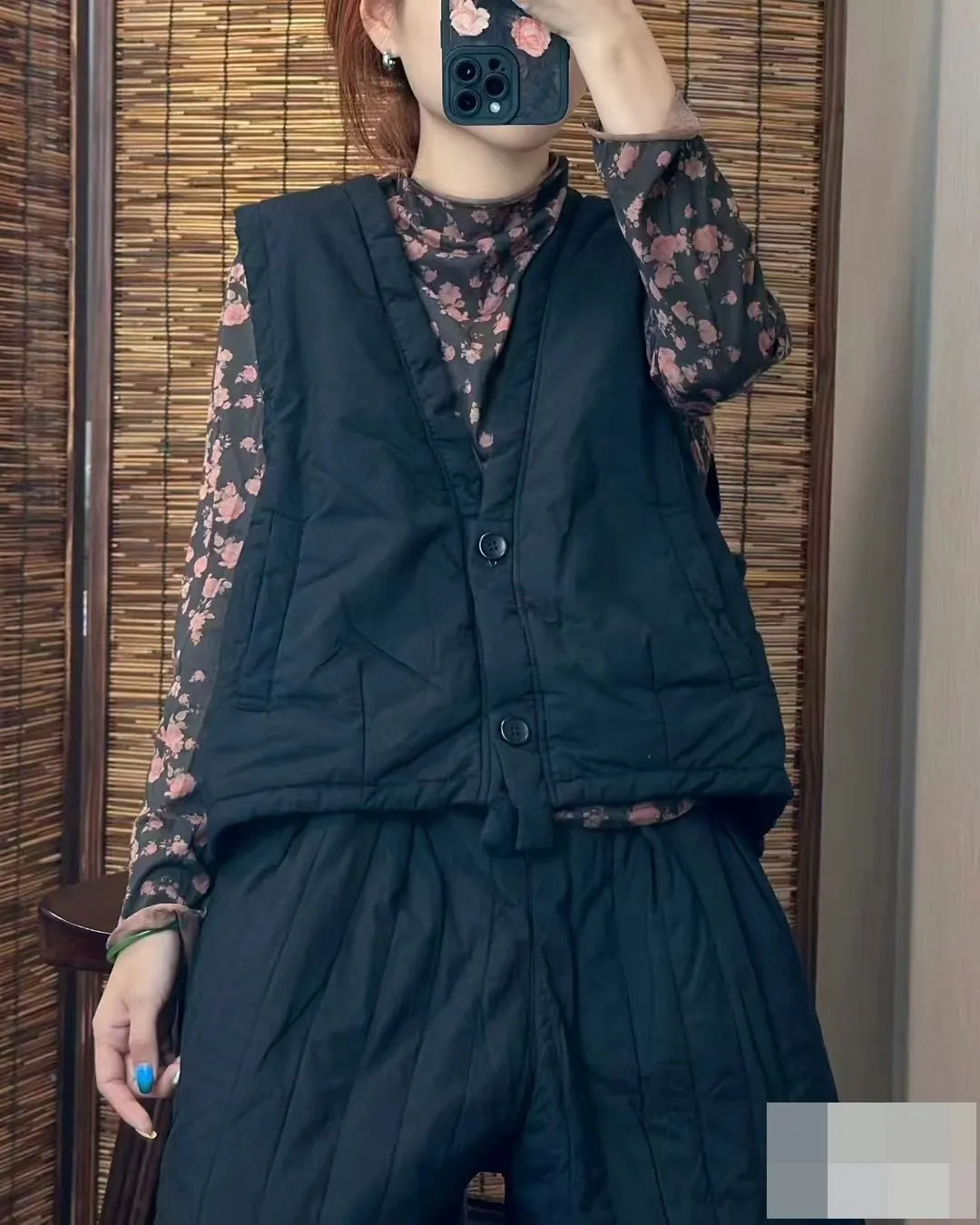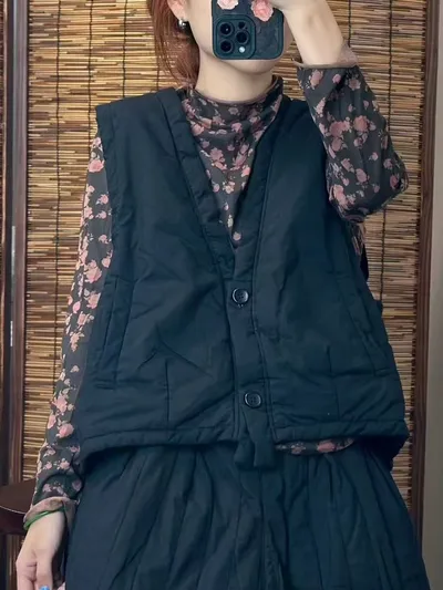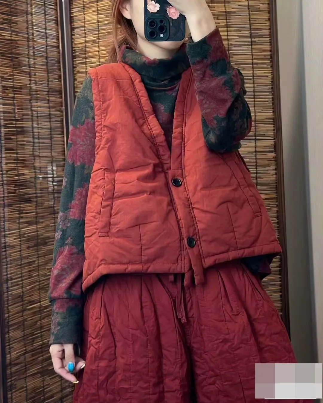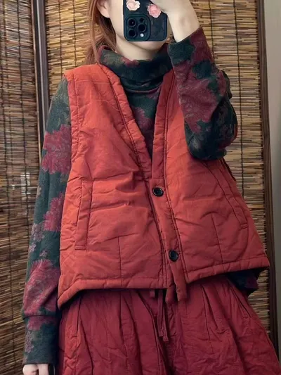 衣都精品- 新款復古寬鬆印花拼接夾棉馬甲外套