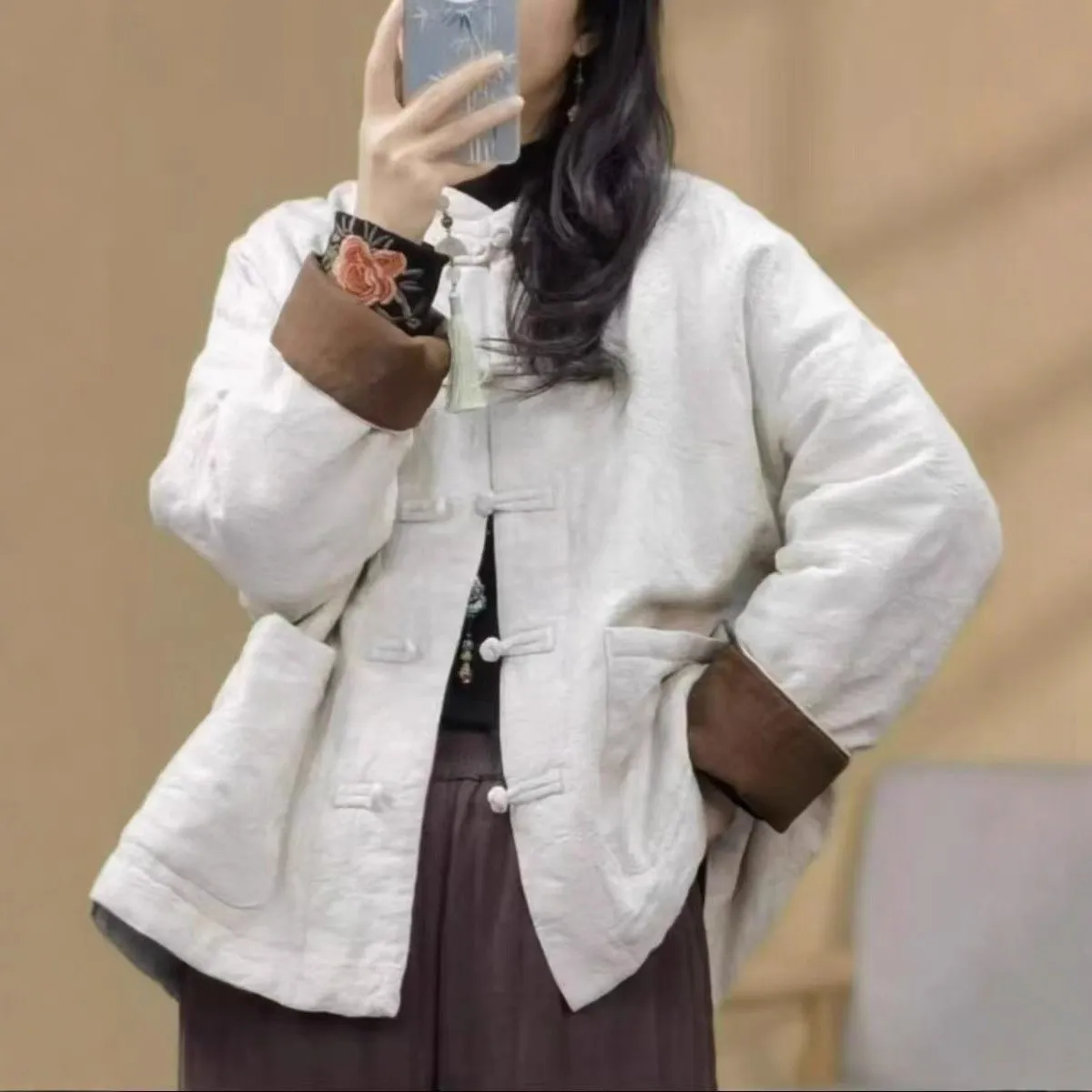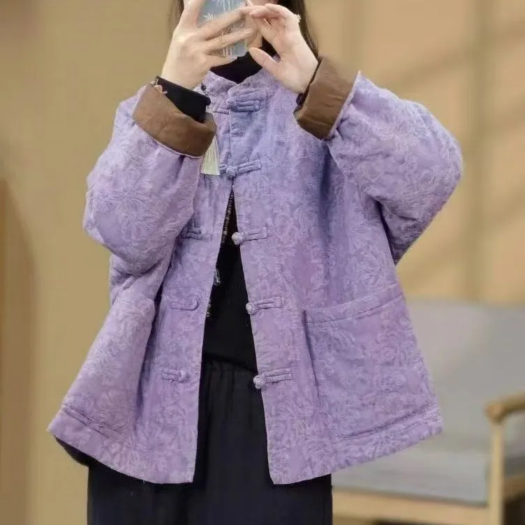 衣都精品- 新款復古長款立領拼接中國風寬鬆夾棉外套