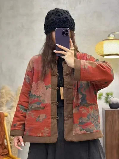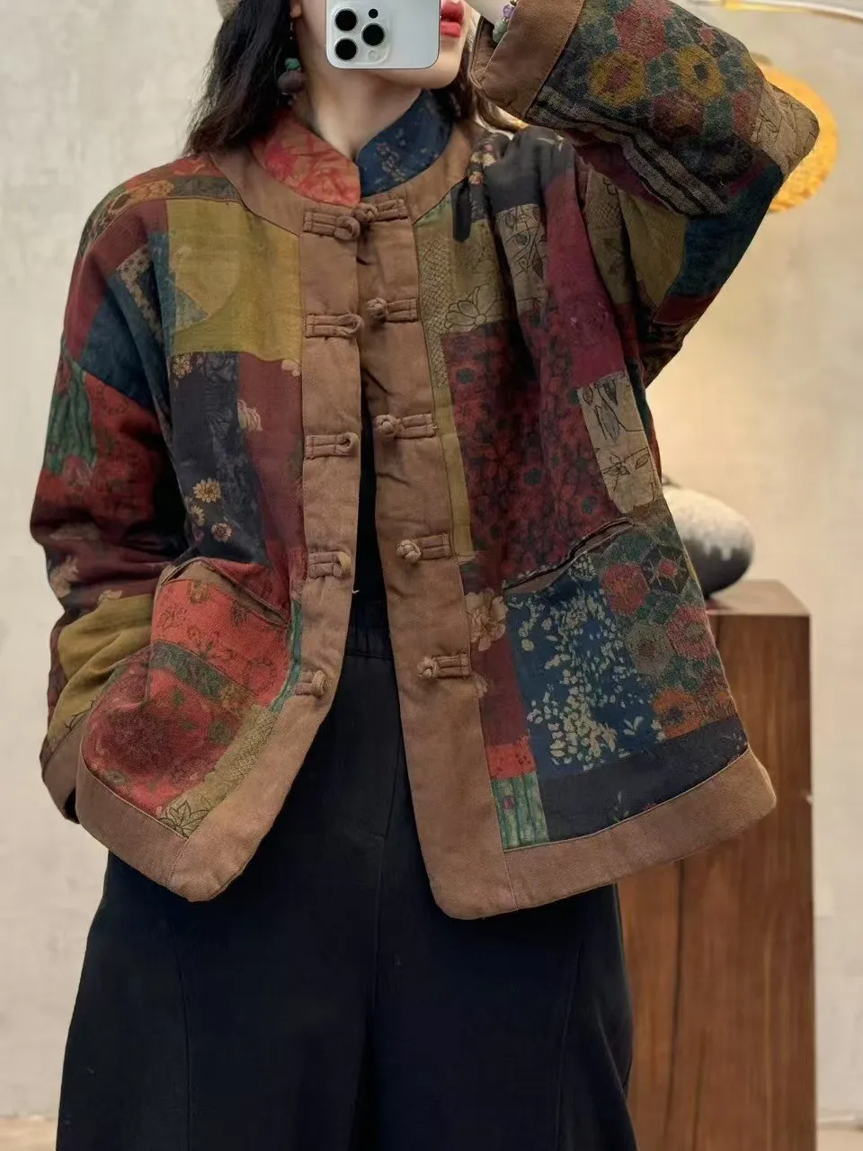 衣都精品- 新款復古長款立領拼接中國風寬鬆夾棉外套