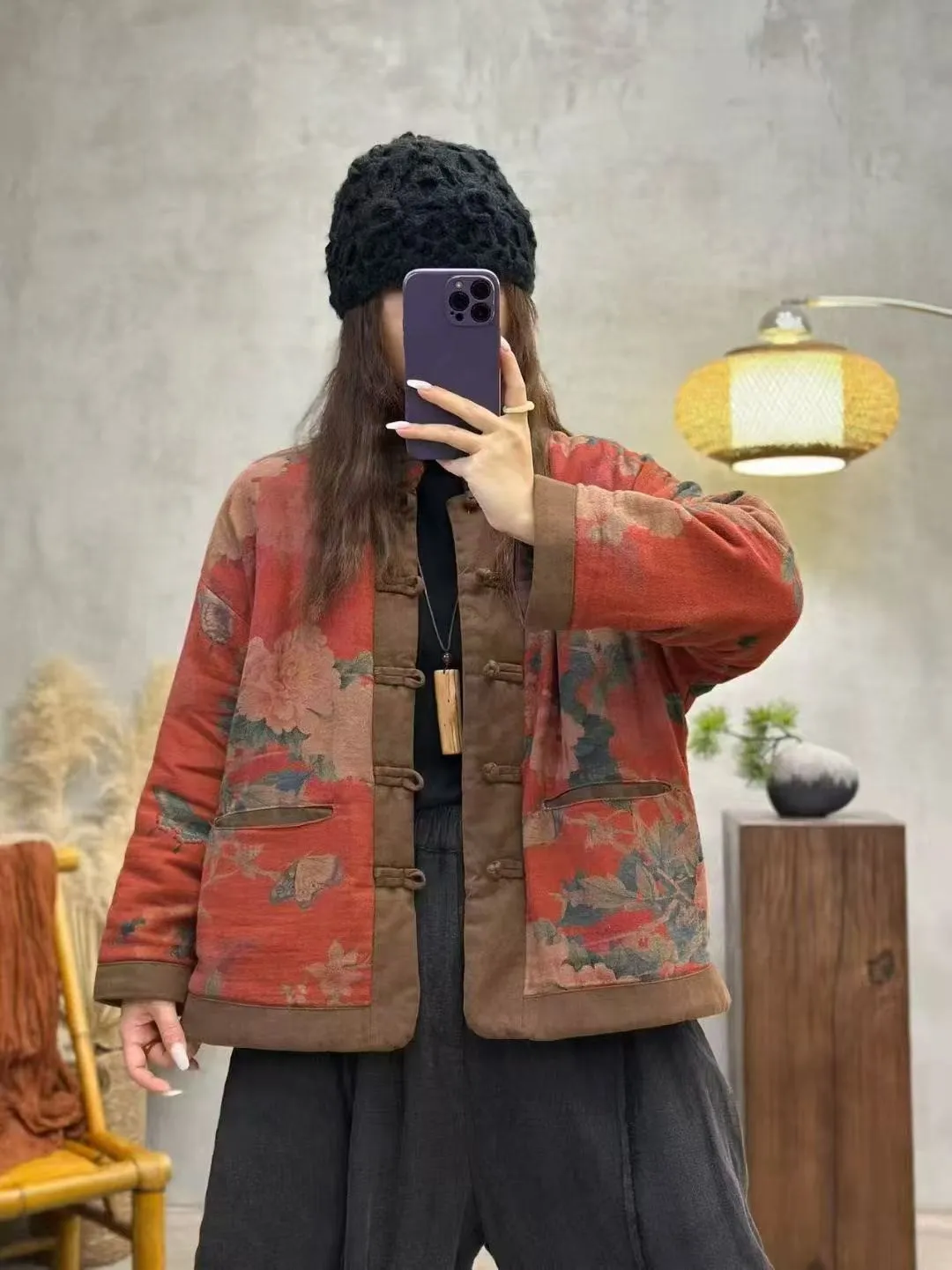 衣都精品- 新款中國風盤扣立領寬鬆印花短版外套