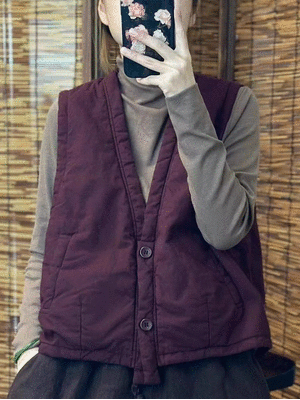 衣都精品- 新款簡約純色V領夾棉馬甲外套