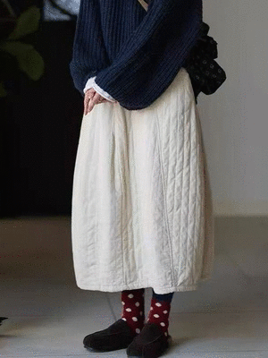 衣都精品- 新款柔軟全棉細條絨夾棉半身裙