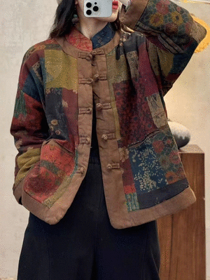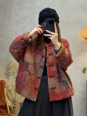衣都精品- 新款中國風盤扣立領寬鬆印花短版外套