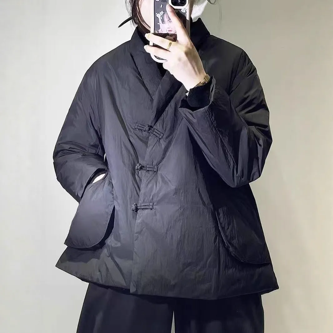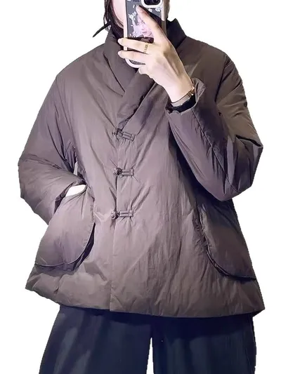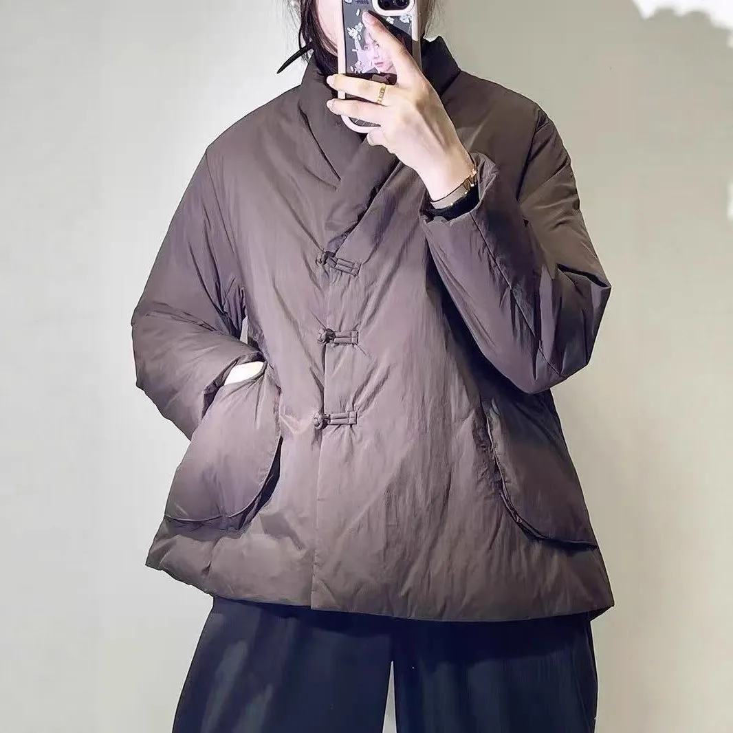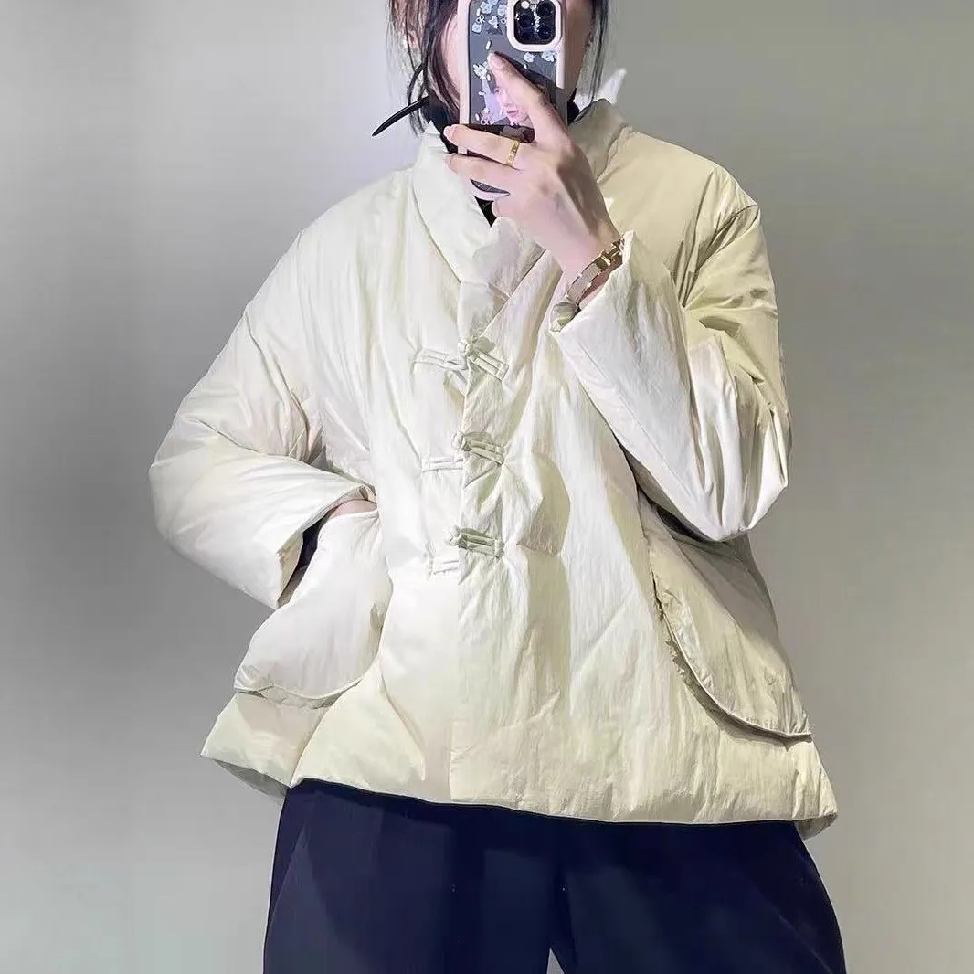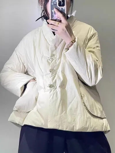 衣都精品- 新款中式V領輕薄短款白鴨絨寬鬆外套