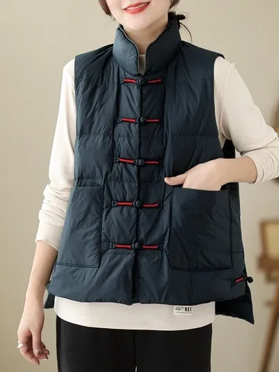 衣都精品- 新款復古盤扣夾棉寬鬆坎肩馬甲外套
