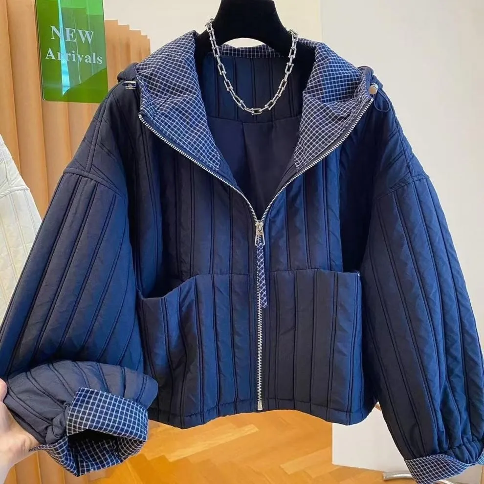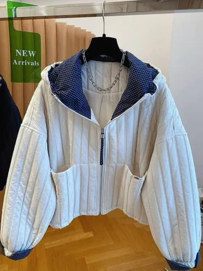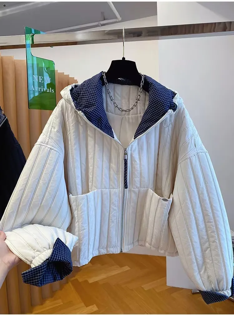 衣都精品- 新款輕薄抽繩收腰連帽夾棉短外套