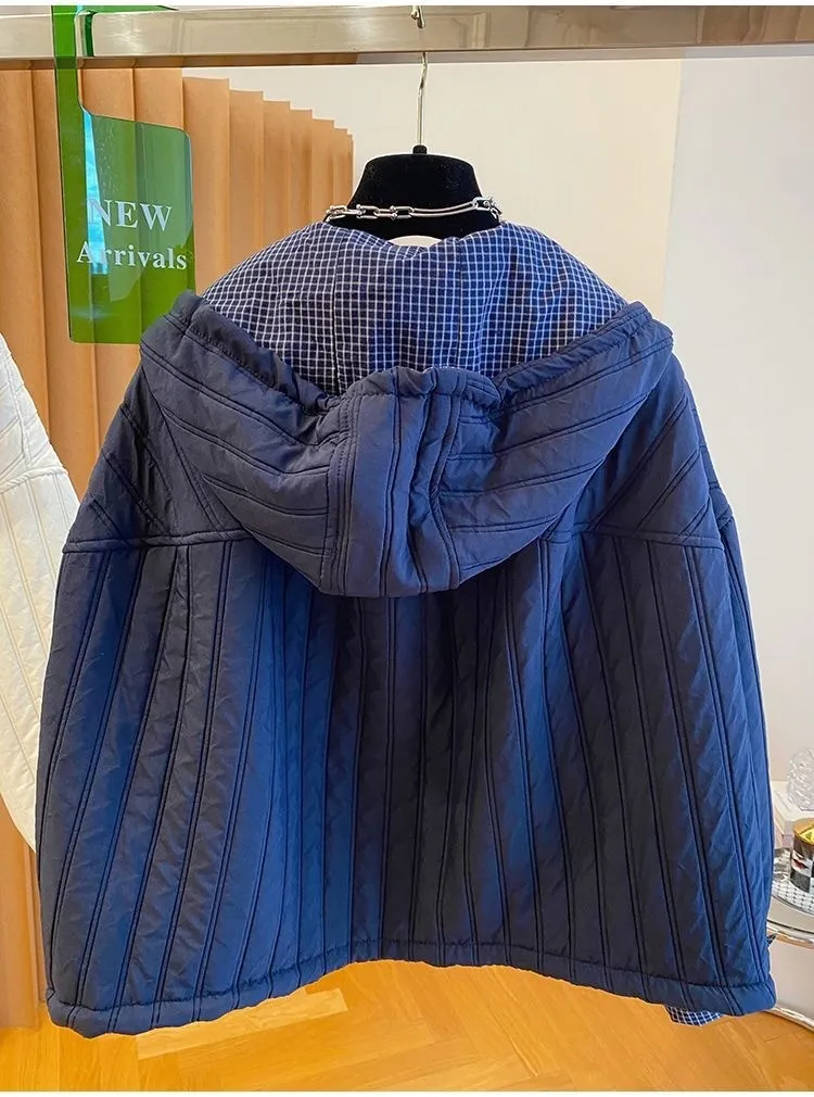 衣都精品- 新款磨毛格紋加厚棉襖中長款兩面穿夾棉外套