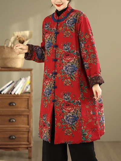衣都精品- 新款復古中式盤扣印花中長款外套