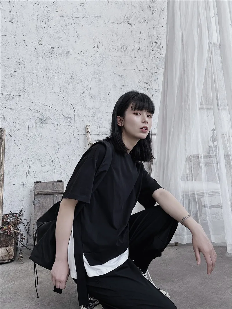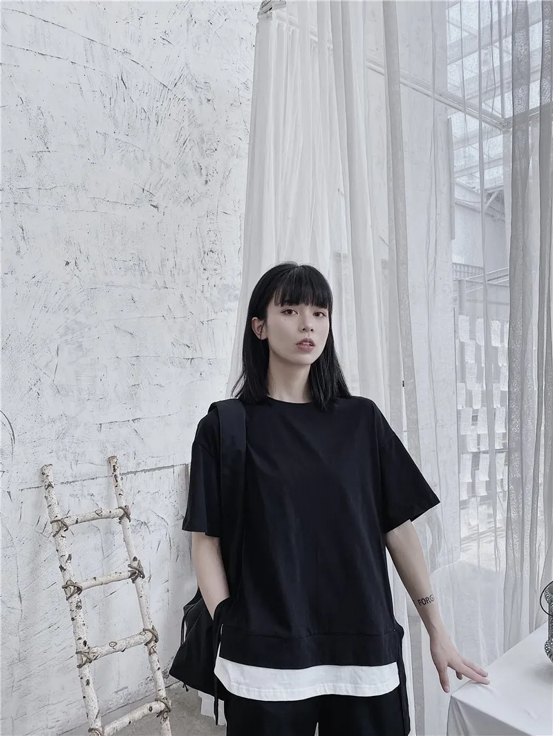 衣都精品- 2023新款假二件不規則小眾寬鬆短袖上衣